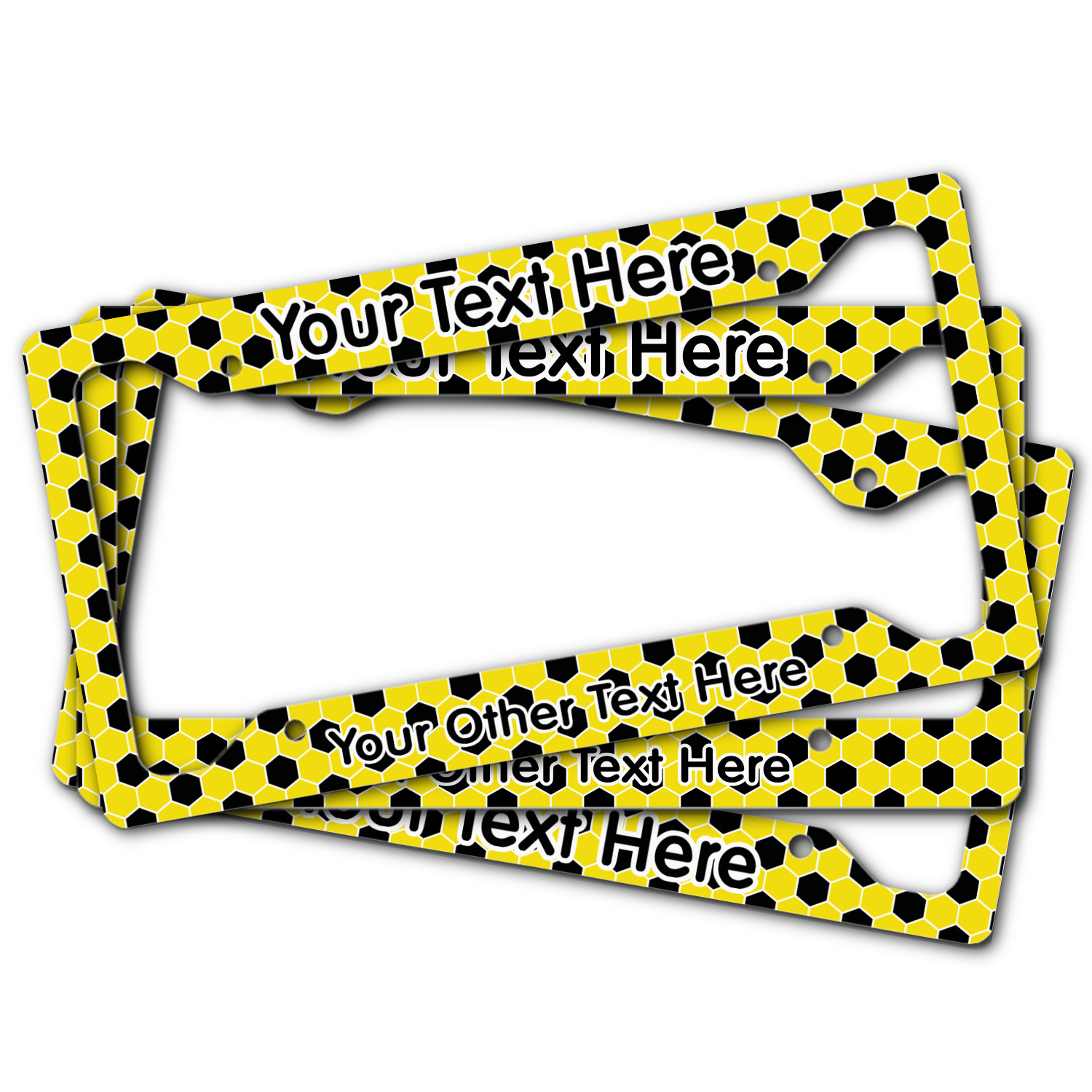 Each customizable license plate frame is made from a fine, yet sturdy aluminum material that measures approximately 6.5 x 12.15 inches, accommodating most standard license plates. The thickness allows the license plate frame to adhere completely to your license plate for a seamless look. We carry 3 styles of license plate frames to customize - Style A has texts on top and bottom, Style B offers texts on top and bottom as well as a full fill bottom border, and Style C offers text at the bottom only. The personalized license plate frame comes with four mounting holes for easy installation! We print each custom design across the frame with a glossy finish.
