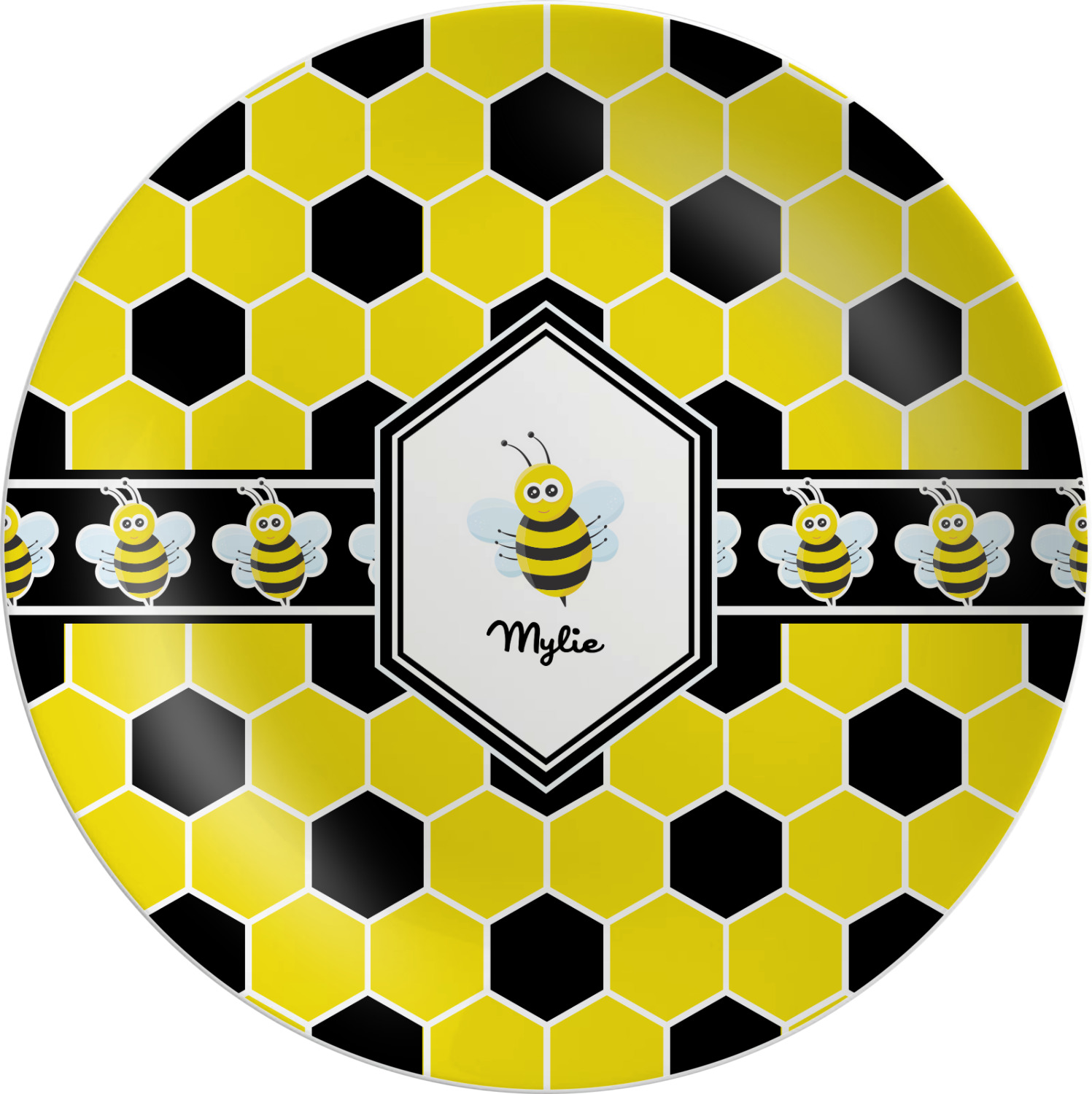 There is no lack of sweetness with this honeycomb design. Our cute little bees have been hard at work just for you. The traditional yellow, black and white bumble bee colors have been used to form the honeycomb pattern.