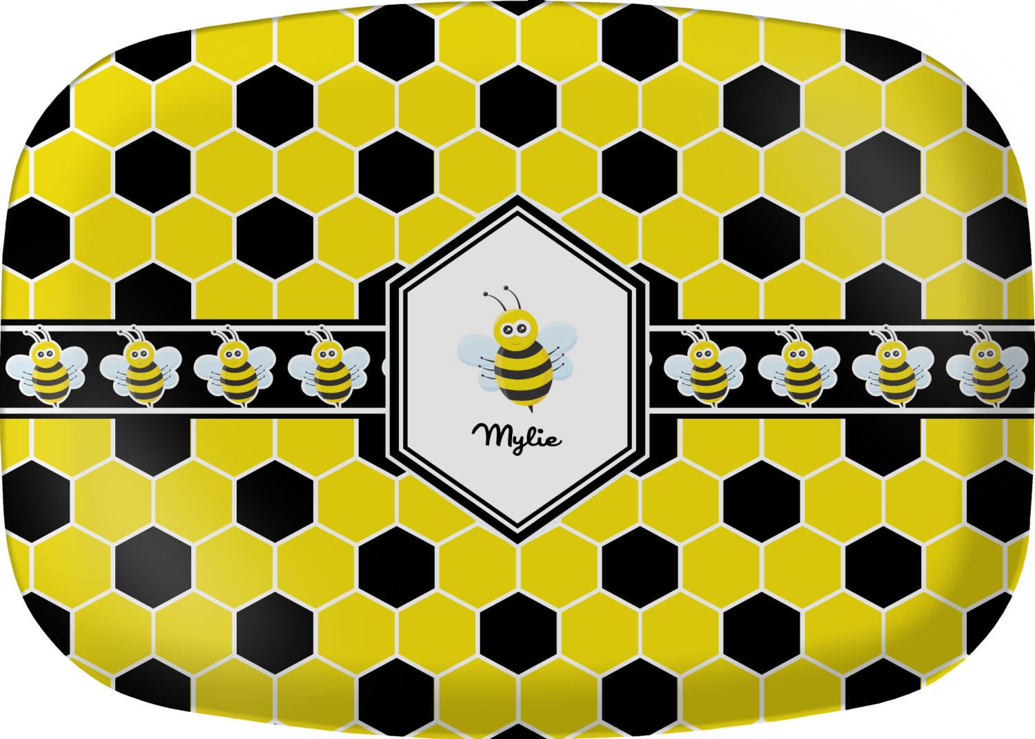There is no lack of sweetness with this honeycomb design. Our cute little bees have been hard at work just for you. The traditional yellow, black and white bumble bee colors have been used to form the honeycomb pattern.
