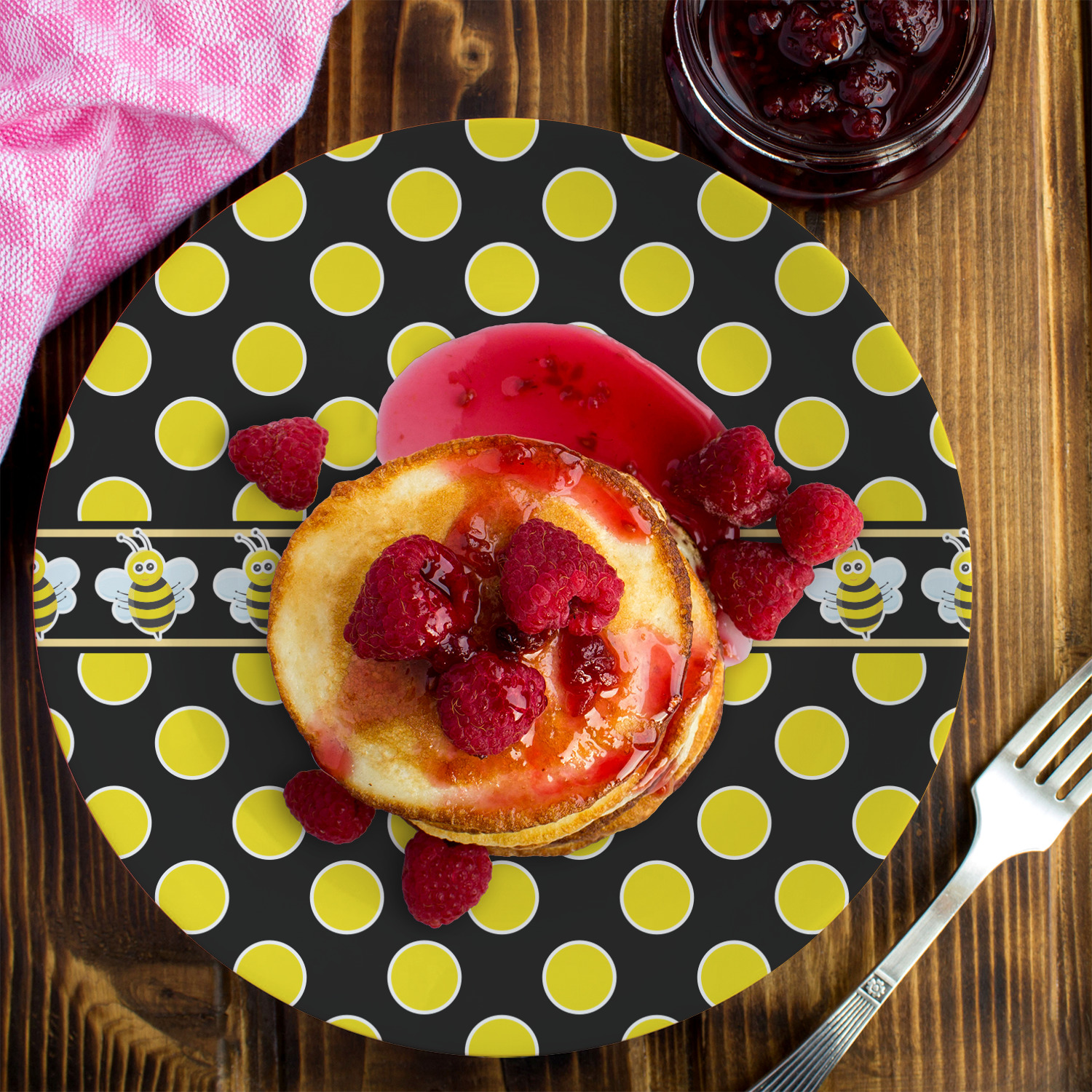 These personalized plates are free of BPA and break resistant, to survive the many drops of daily use. Your customization is displayed across the entire face of the plate, while the back of the plate remains white in color. We offer these plates in two different sizes: 8 inches and 10 inches in diameter.