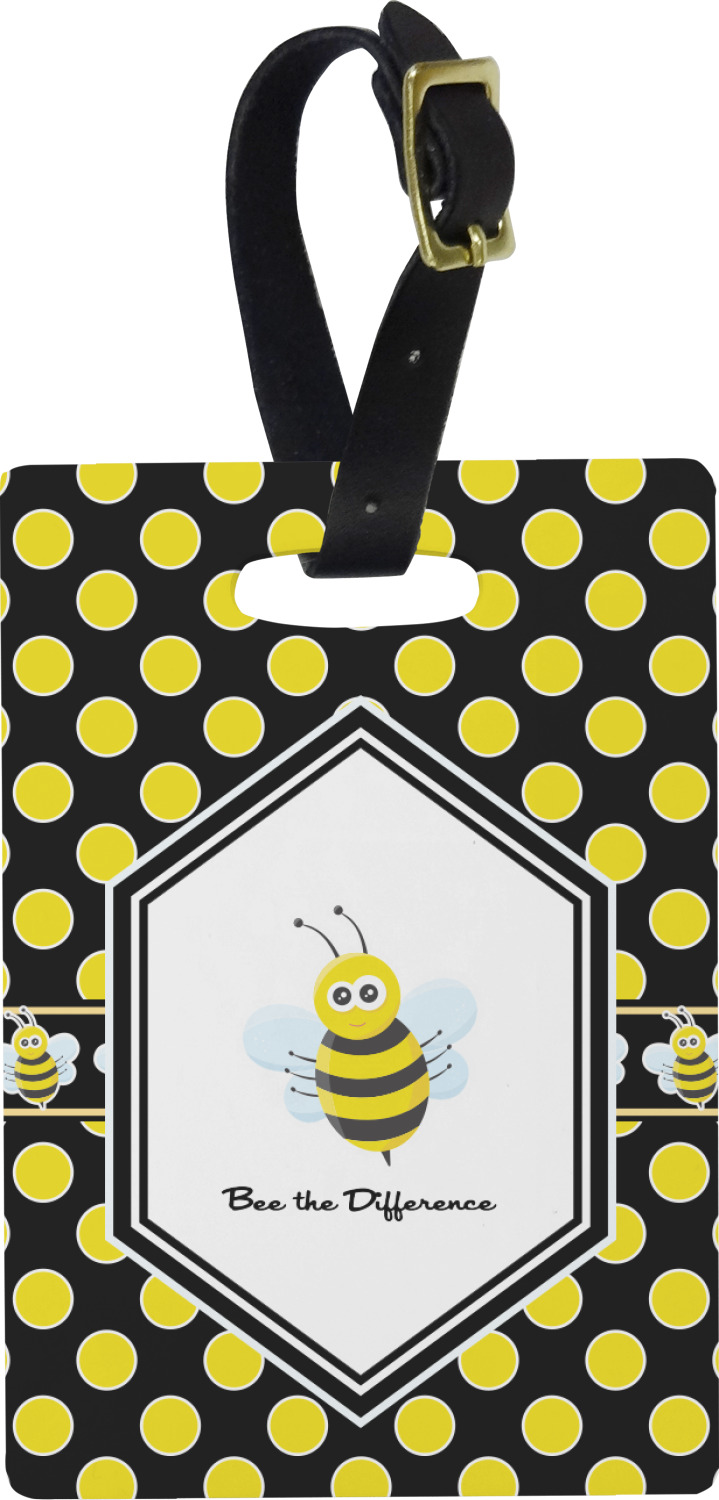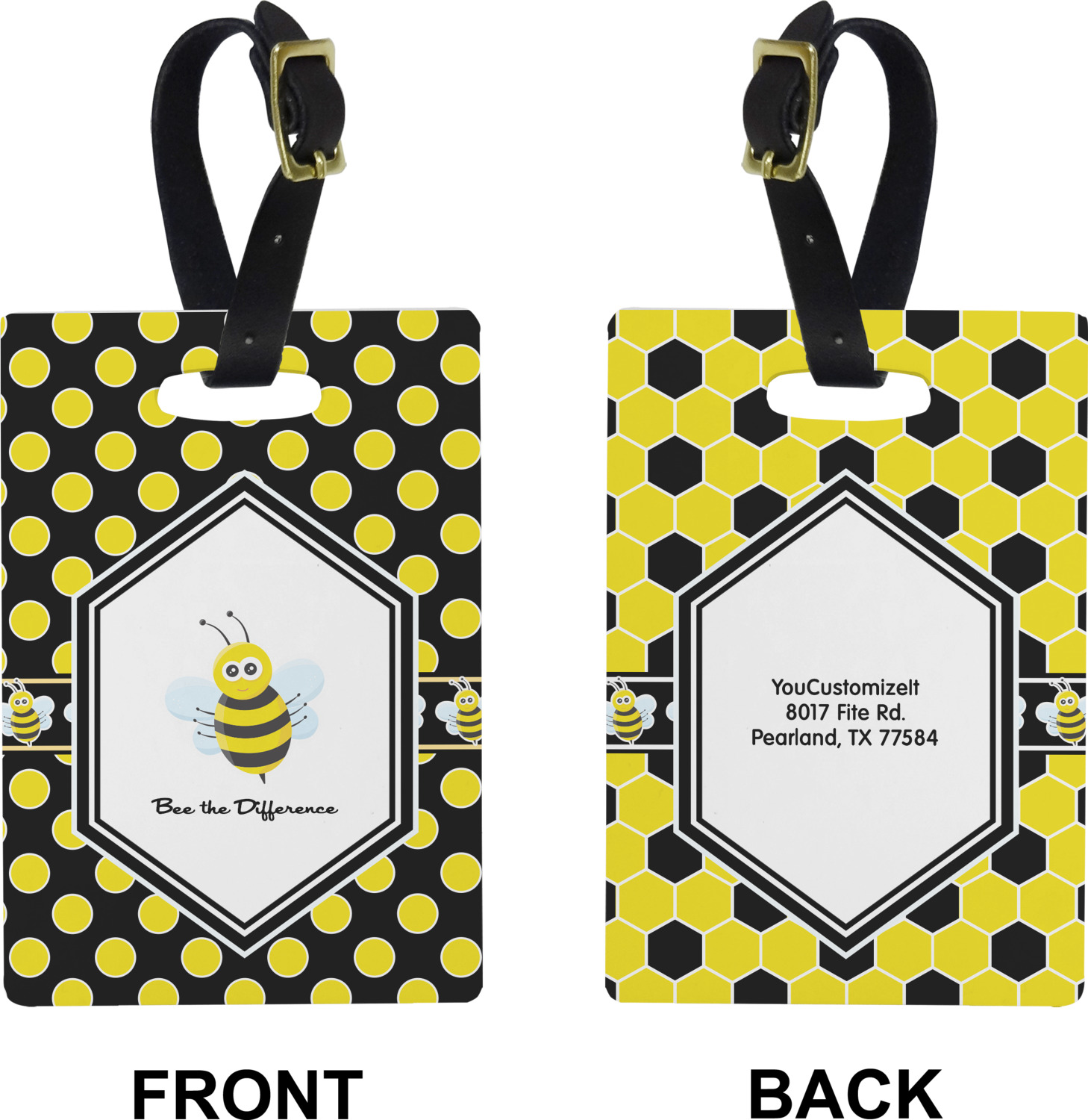 These personalized bag tags are sold in a variety of shapes, so that you may find the product that meets your vision exactly. We sell a round luggage tag, which measures at approximately 4" x 4". Our square luggage tag is about 3.5" x 3.5", while our rectangular version is 2.75" x 4 ".