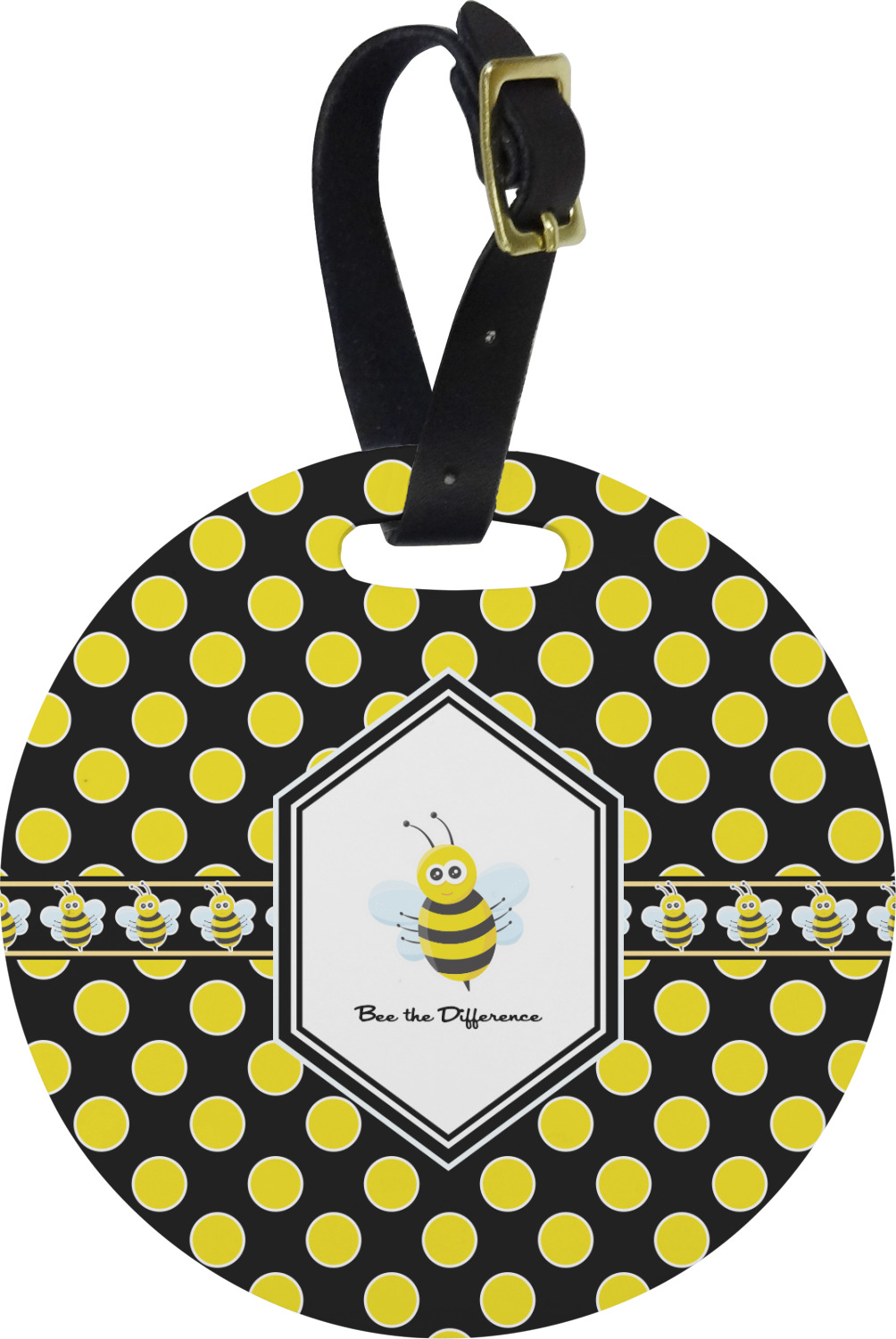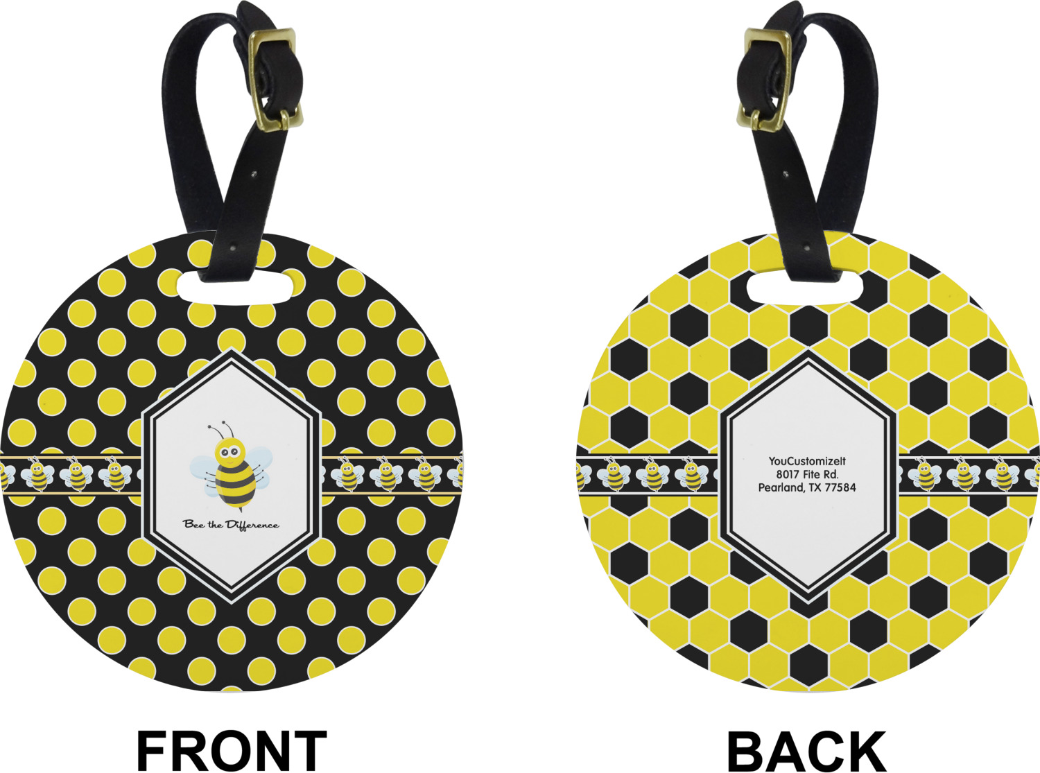 These personalized bag tags are sold in a variety of shapes, so that you may find the product that meets your vision exactly. We sell a round luggage tag, which measures at approximately 4" x 4". Our square luggage tag is about 3.5" x 3.5", while our rectangular version is 2.75" x 4 ".