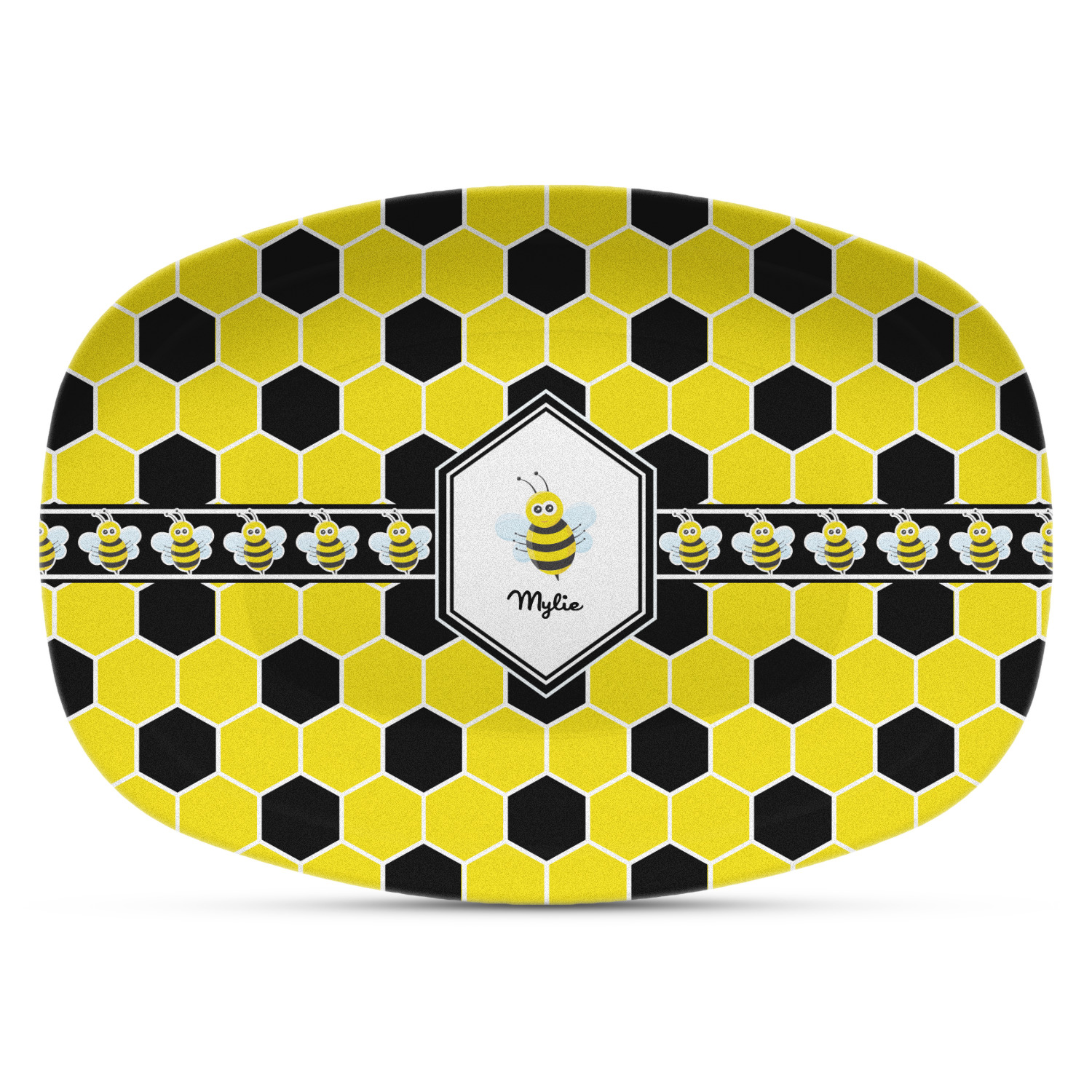 These serving platters are made from a composite, thermo-set, polymer plastic that gives it the versatility, durability, and weight of a melamine platter, without any of the downsides of melamine. These personalized platters, can withstand temperatures up to 250 degrees Fahrenheit, for up to 60 minutes. No harmful chemicals, such as BPA, formaldehyde, and DEHPs were used in the manufacturing of this product. This large serving platter measures at 14" x 10.25", and is spacious enough to hold any of your appetizers or bite-sized desserts. The platter exhibits your personalization across the entirety of its front.