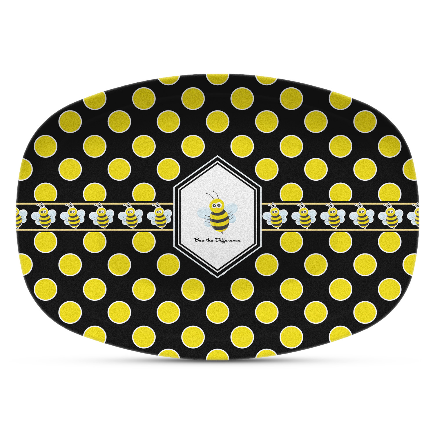 These serving platters are made from a composite, thermo-set, polymer plastic that gives it the versatility, durability, and weight of a melamine platter, without any of the downsides of melamine. These personalized platters, can withstand temperatures up to 250 degrees Fahrenheit, for up to 60 minutes. No harmful chemicals, such as BPA, formaldehyde, and DEHPs were used in the manufacturing of this product. This large serving platter measures at 14" x 10.25", and is spacious enough to hold any of your appetizers or bite-sized desserts. The platter exhibits your personalization across the entirety of its front.