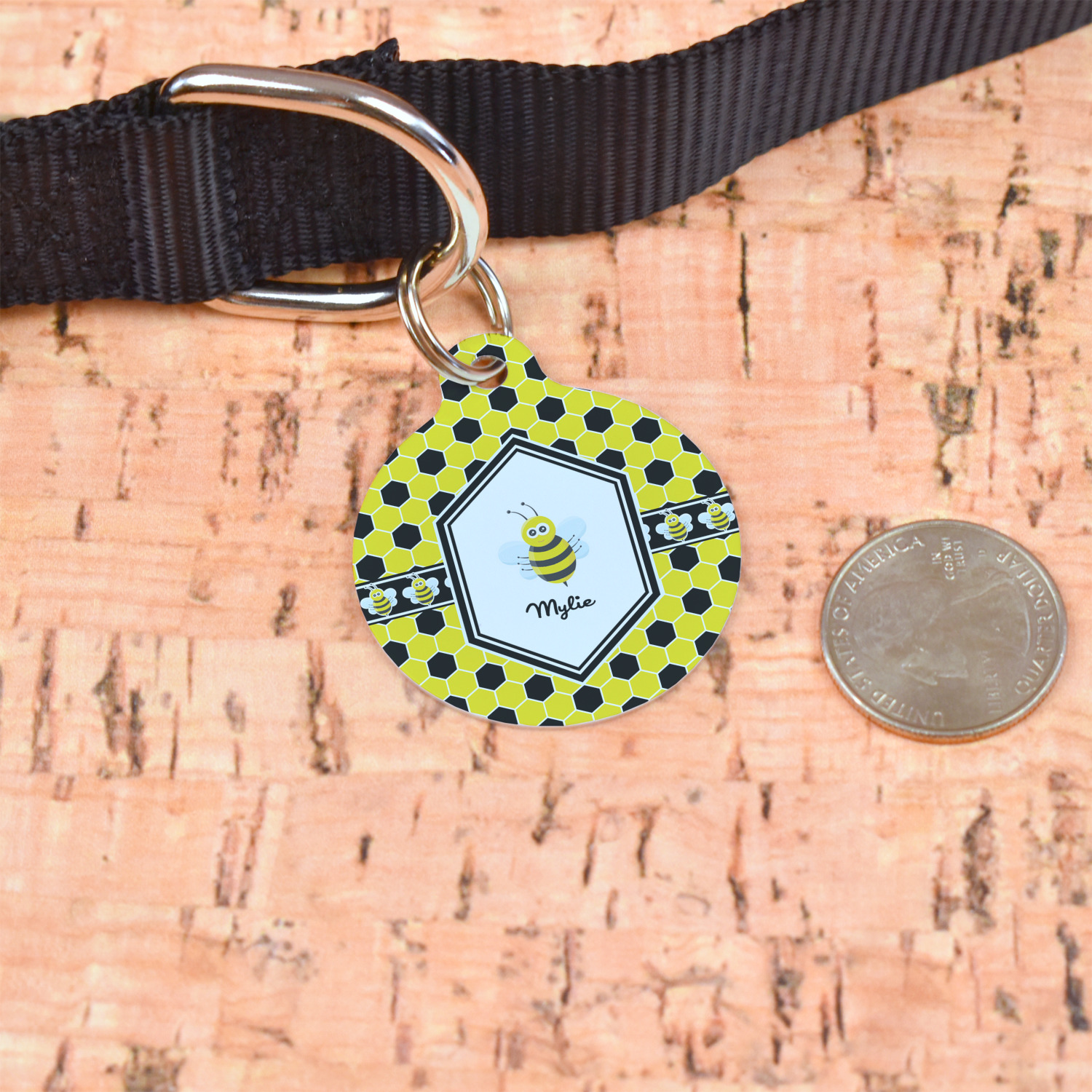 Go ahead; skip the monotony of plain pet ID tags with your very own, customized & personalized, round pet tag! This pet ID tag, fitting for both cats and dogs, will catch the eye of any onlooker (humans, canines, and felines, alike!) and accentuate your pet's individual personality.