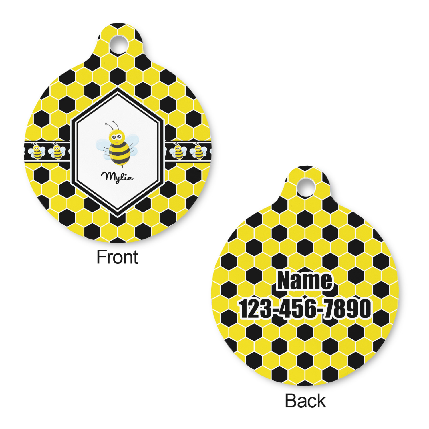 Go ahead; skip the monotony of plain pet ID tags with your very own, customized & personalized, round pet tag! This pet ID tag, fitting for both cats and dogs, will catch the eye of any onlooker (humans, canines, and felines, alike!) and accentuate your pet's individual personality.