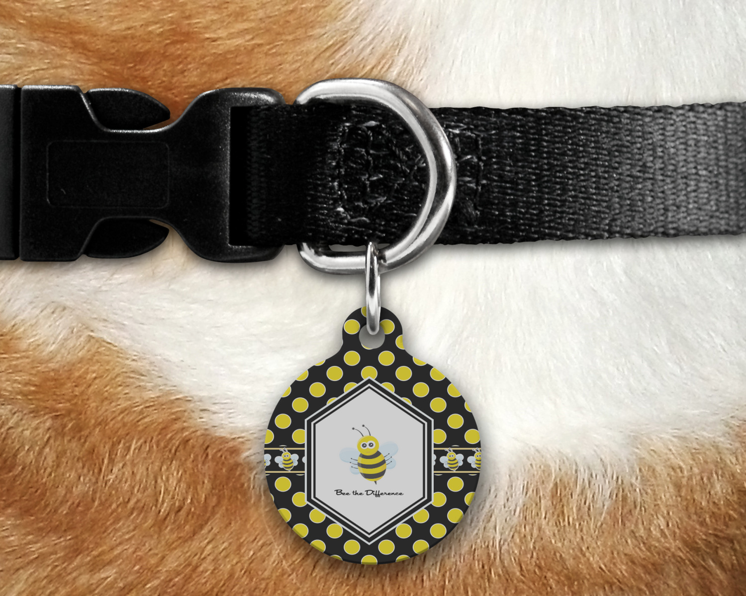 Go ahead; skip the monotony of plain pet ID tags with your very own, customized & personalized, round pet tag! This pet ID tag, fitting for both cats and dogs, will catch the eye of any onlooker (humans, canines, and felines, alike!) and accentuate your pet's individual personality.