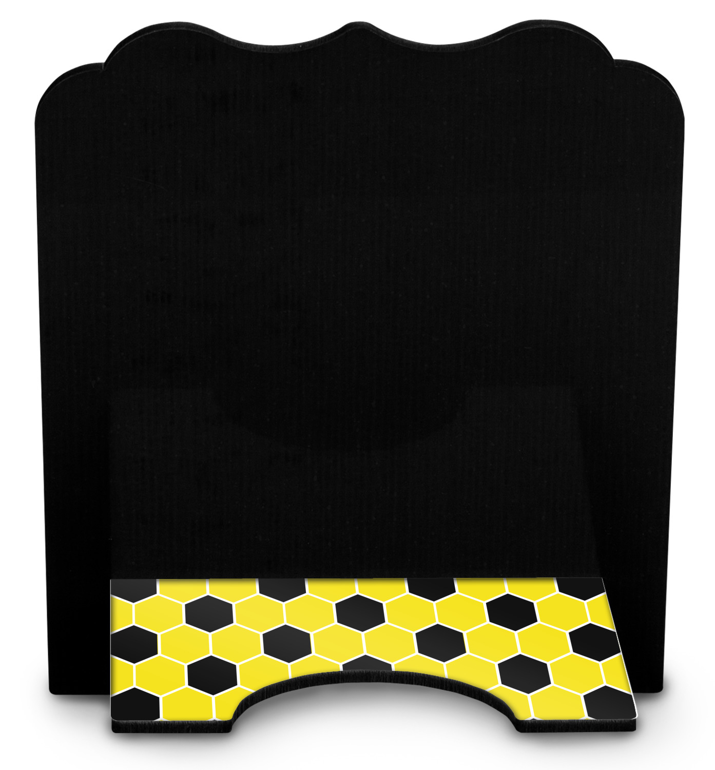 The stand is comprised of two hardboard pieces that fit snugly together and stabilize one another. The bottom part of the iPad stand supports your tablet, and has space for your tablets charger while in use. At 9.25" x 11.5", this tablet mount can support a device between the sizes of the iPad Pro and the iPad Mini 2. The uppermost part of the stand features a decorative, curved edge for a classy, suave appearance. We print your customization atop the face of the stand, in vibrant color. The remaining sides are colored a sleek black.