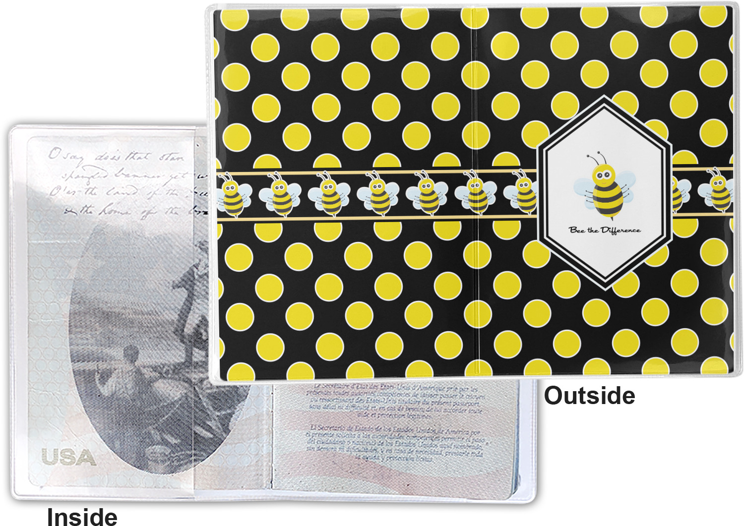 This cover is made of a sturdy clear vinyl with a personalized vinyl insert inside. There is a large and a small pocket on either side to hold the covers of your passport easily and firmly. The passport holder is approximately 7.5" x 5.25", the perfect size to snugly fit your passport. This slim cover is the perfect way to protect your passport without being one more bulky item you have to carry.