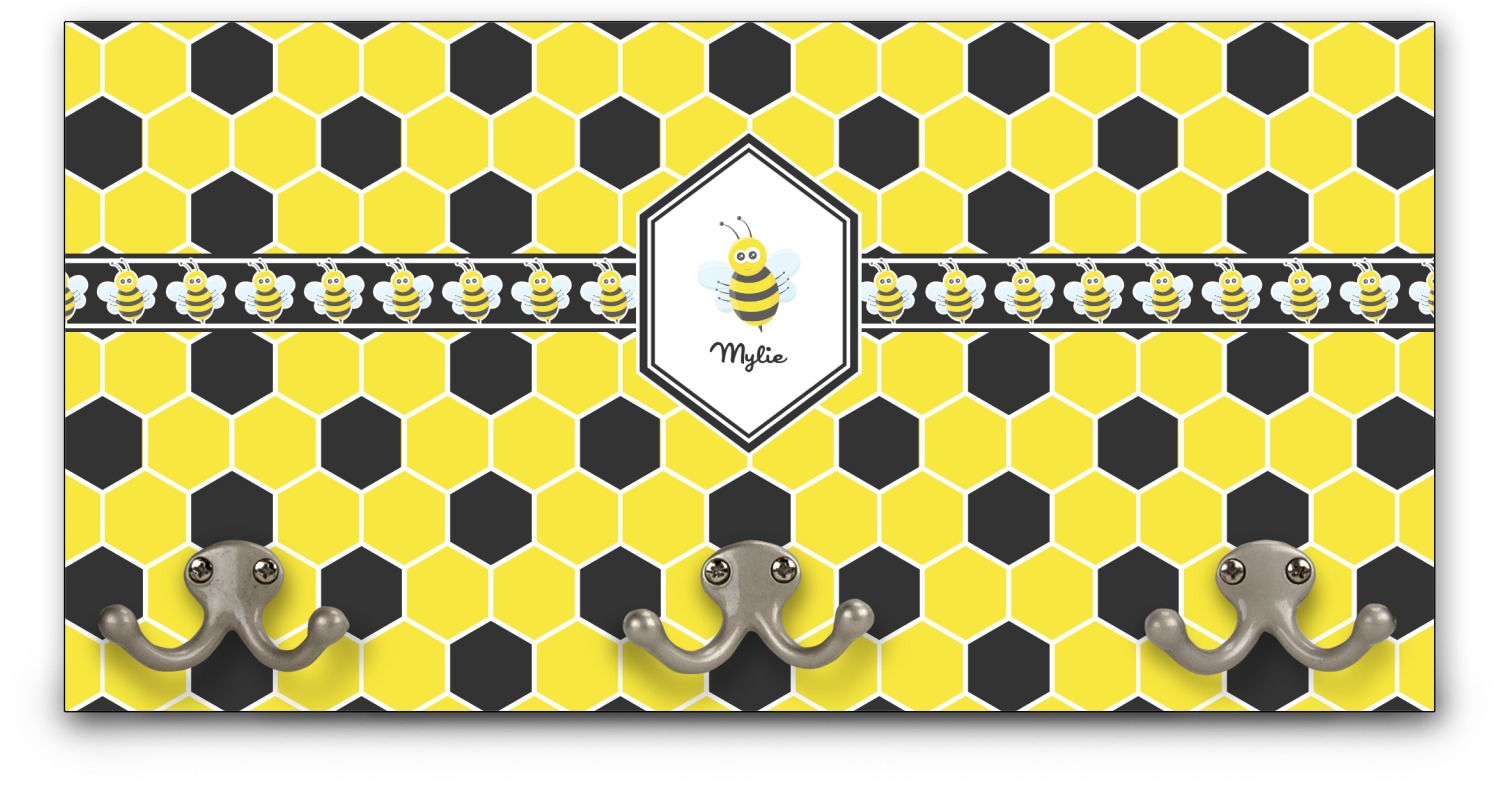 This coat rack is the perfect way to add some personality to your wall or entryway. The board is made of a strong maple that is approximately 16" x 8". The three 2-prong hooks are a sturdy metal that have three screws attaching them to the board. Your design is printed right onto the front of the board while the back and sides are a simple black.