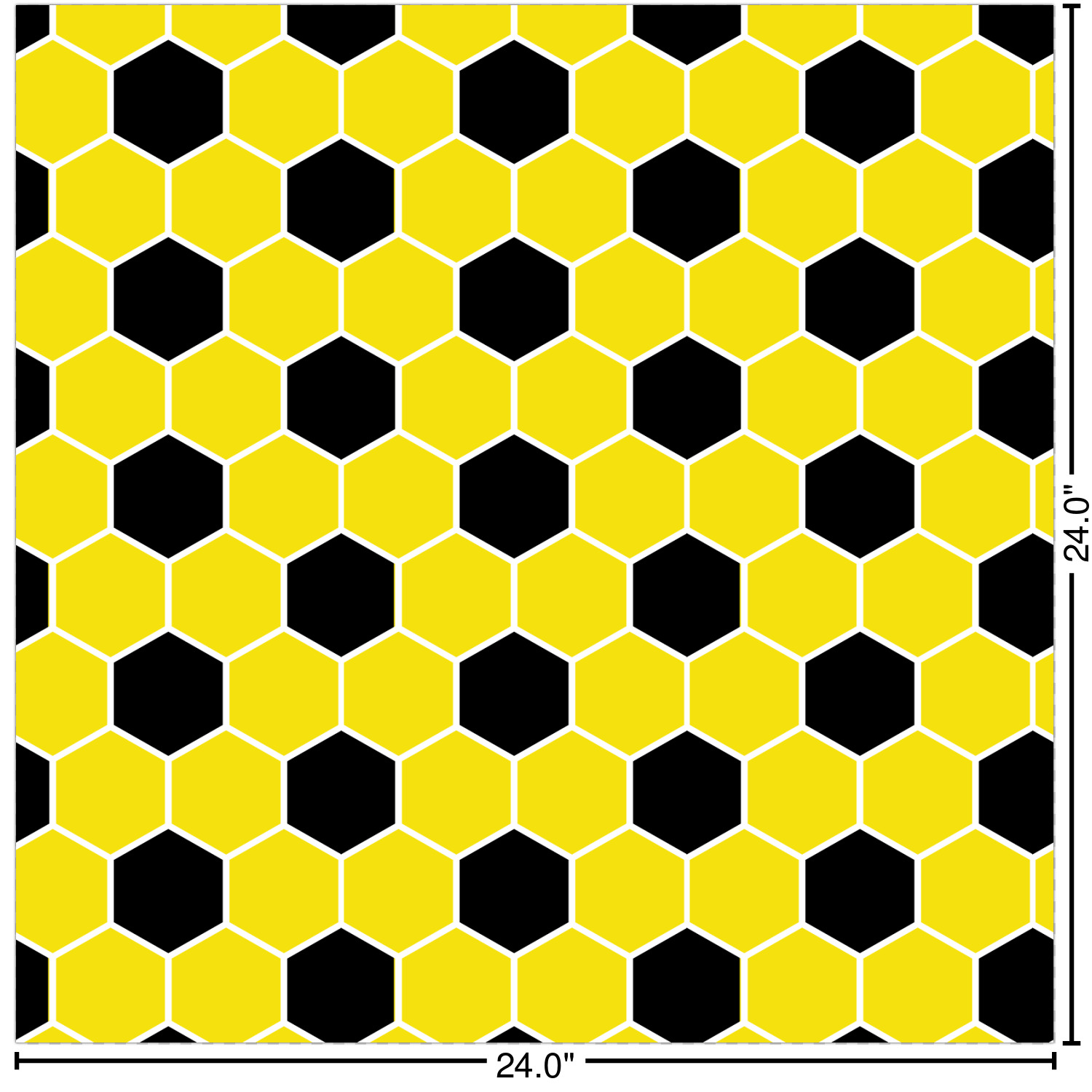 There is no lack of sweetness with this honeycomb design. Our cute little bees have been hard at work just for you. The traditional yellow, black and white bumble bee colors have been used to form the honeycomb pattern.