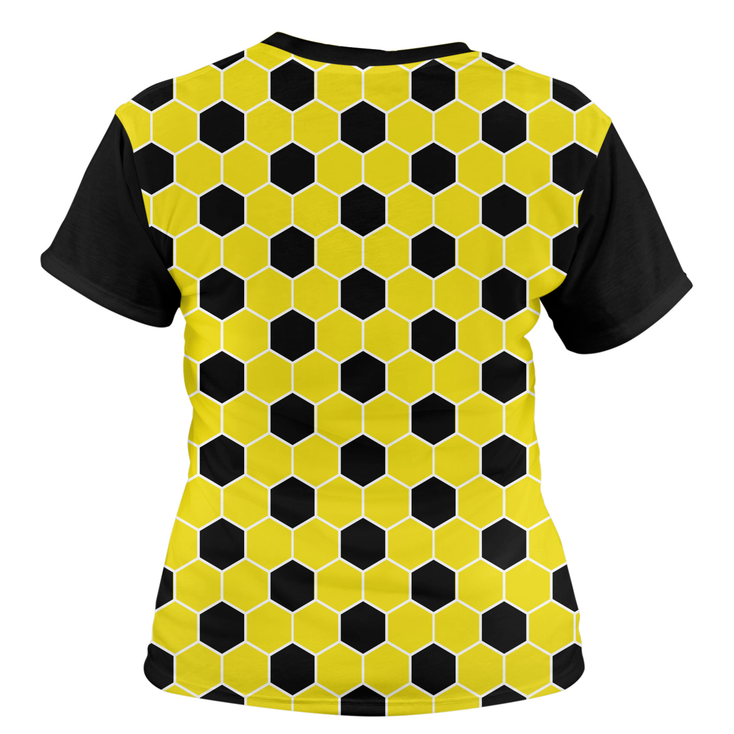 Our womens t-shirts are a lovely jersey knit polyester. They come in 6 different sizes ranging from X-Small to XX-Large. These shirts are your basic comfy crew neck t-shirts that look good on anyone. You are able to personalize the sleeves, front, AND back! Isn't that awesome?! Make everything one color or all different. The choice is yours.