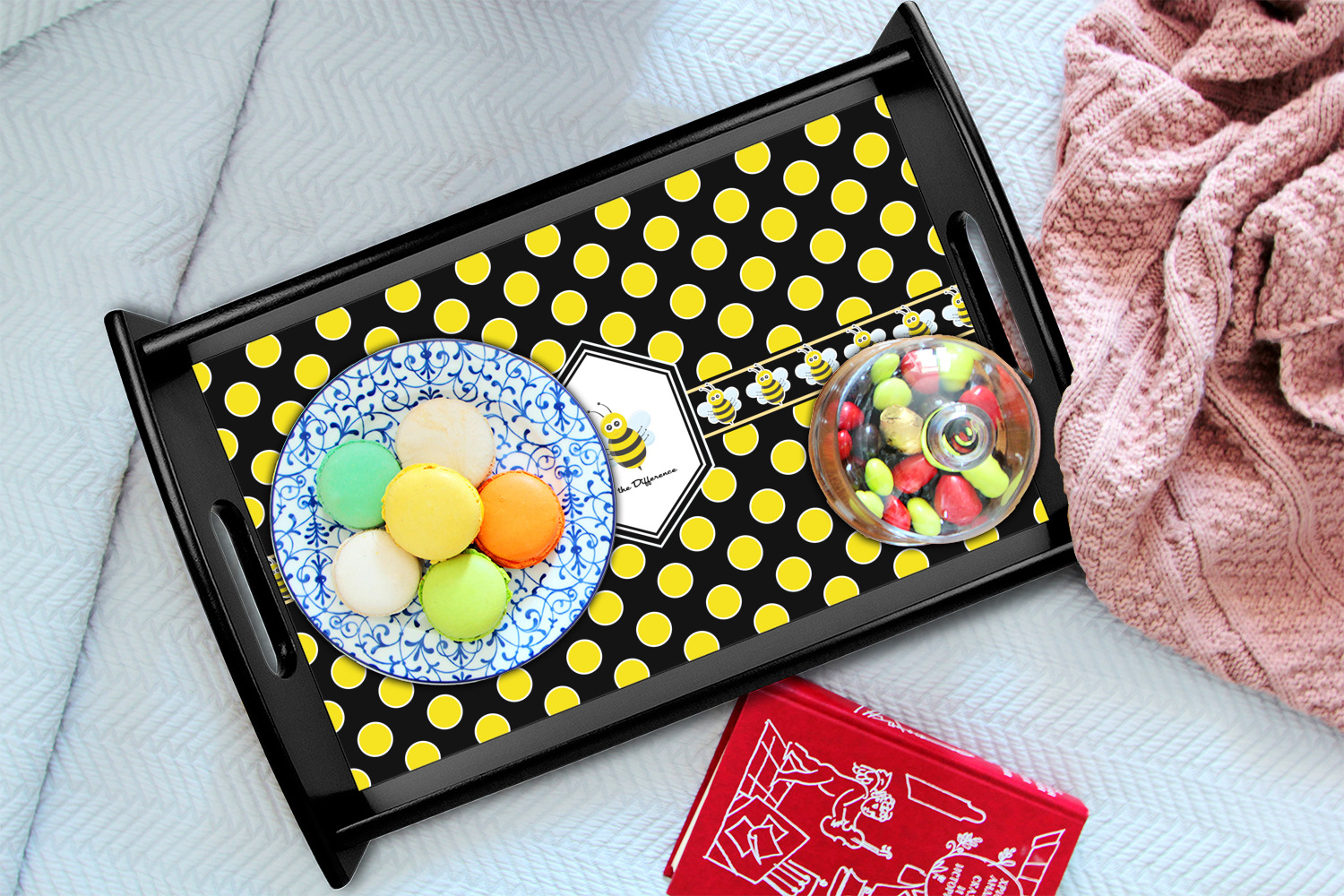 There is no lack of sweetness with this honeycomb design. Our cute little bees have been hard at work just for you. The traditional yellow, black and white bumble bee colors have been used to form the honeycomb pattern.