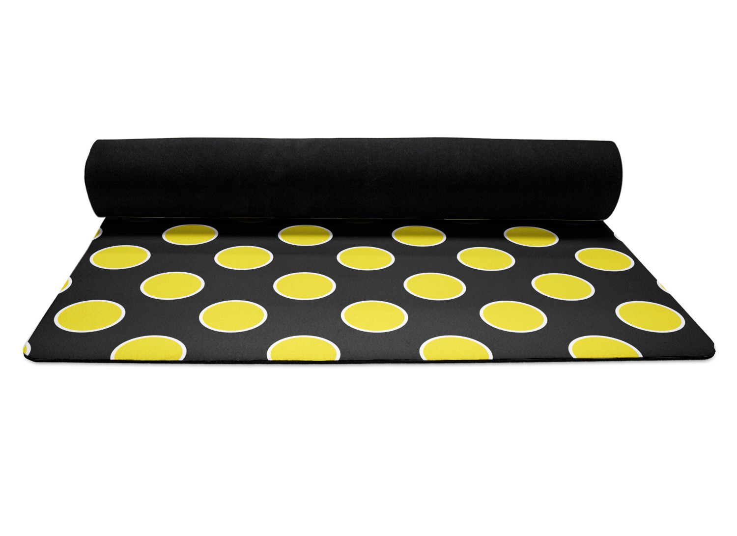 The top of the mats are dyed with your design using eco friendly non solvent inks. They have a smooth fleece felt top and feels very soft. The back of the mat is a sleek black and is a squishy non-slip texture to ensure that your mat does not slip on the floor. Our rubber backed mats are the perfect size at 68" x 24" and are just under approximately 1/4 inch thickness.