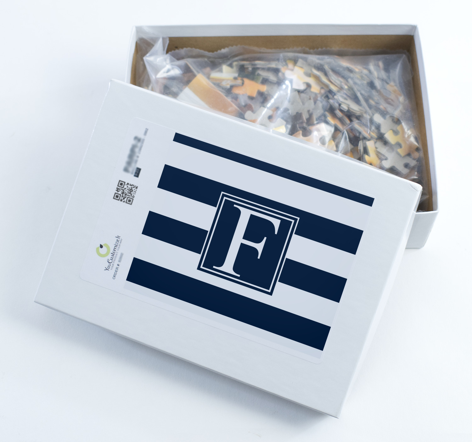 We print our puzzles on thick white chipboard in vibrant colors, then laminate the chipboard and die cut your puzzle. Your jigsaw puzzle is shipped to you in a box with the image of the puzzle on the box.