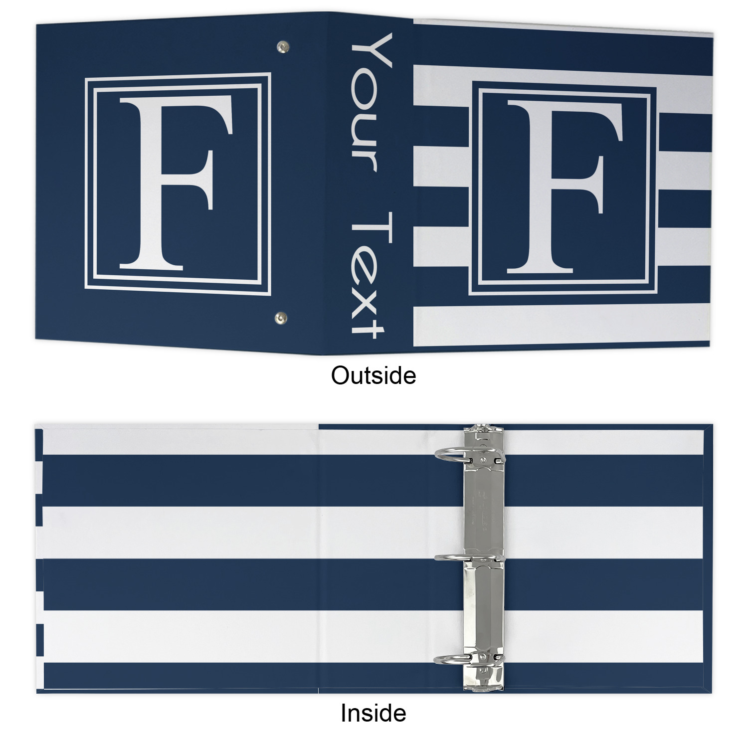 Made from a sturdy cardboard base with a full high quality canvas textured vinyl wrap with the design of your choice. Unlike our standard 3-ring binder with the full wrap design your artwork wraps from the front and back and into the inside of the binder.