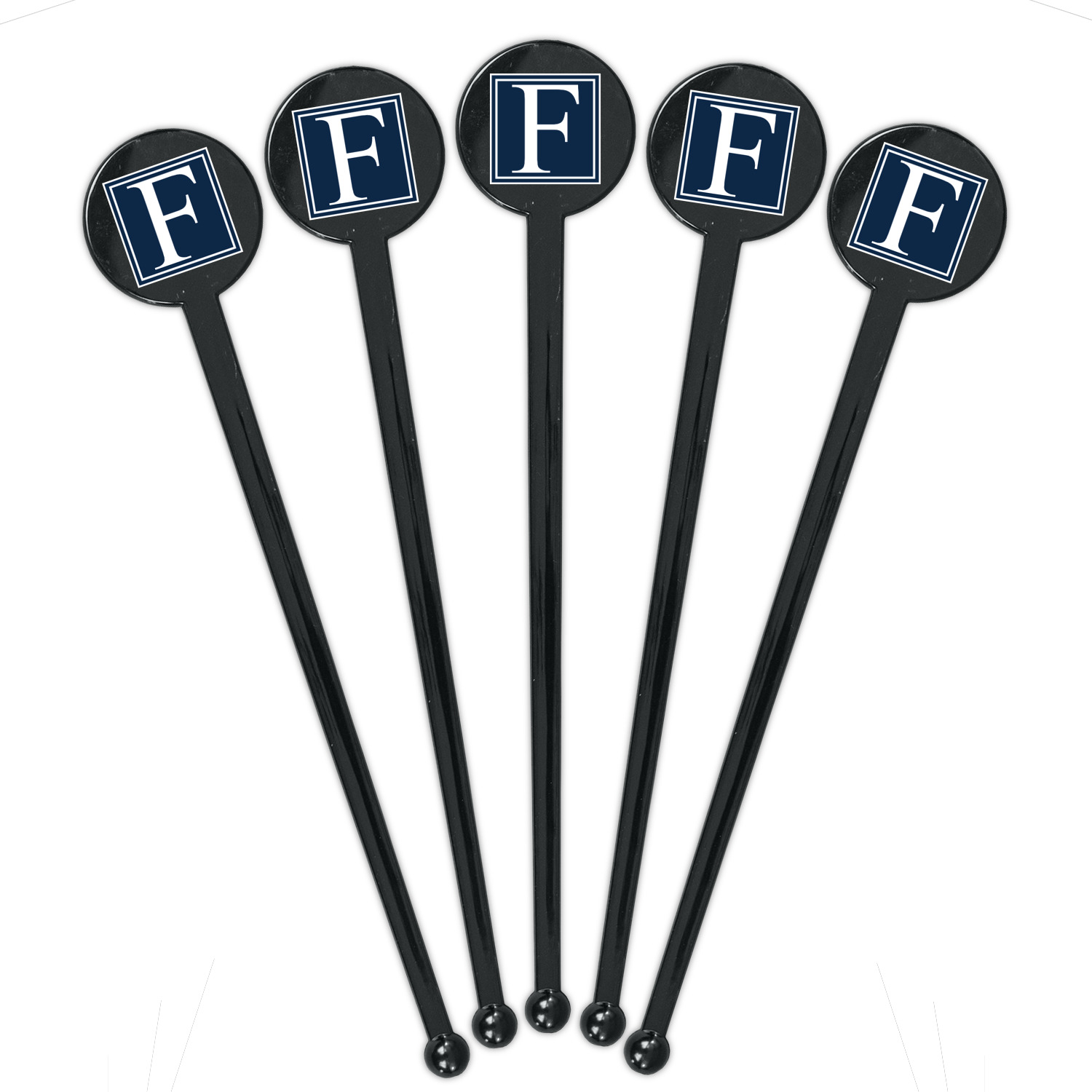 Coastal / Beach Style Designs for 7" Round Plastic Stir Sticks - Black - Single-Sided