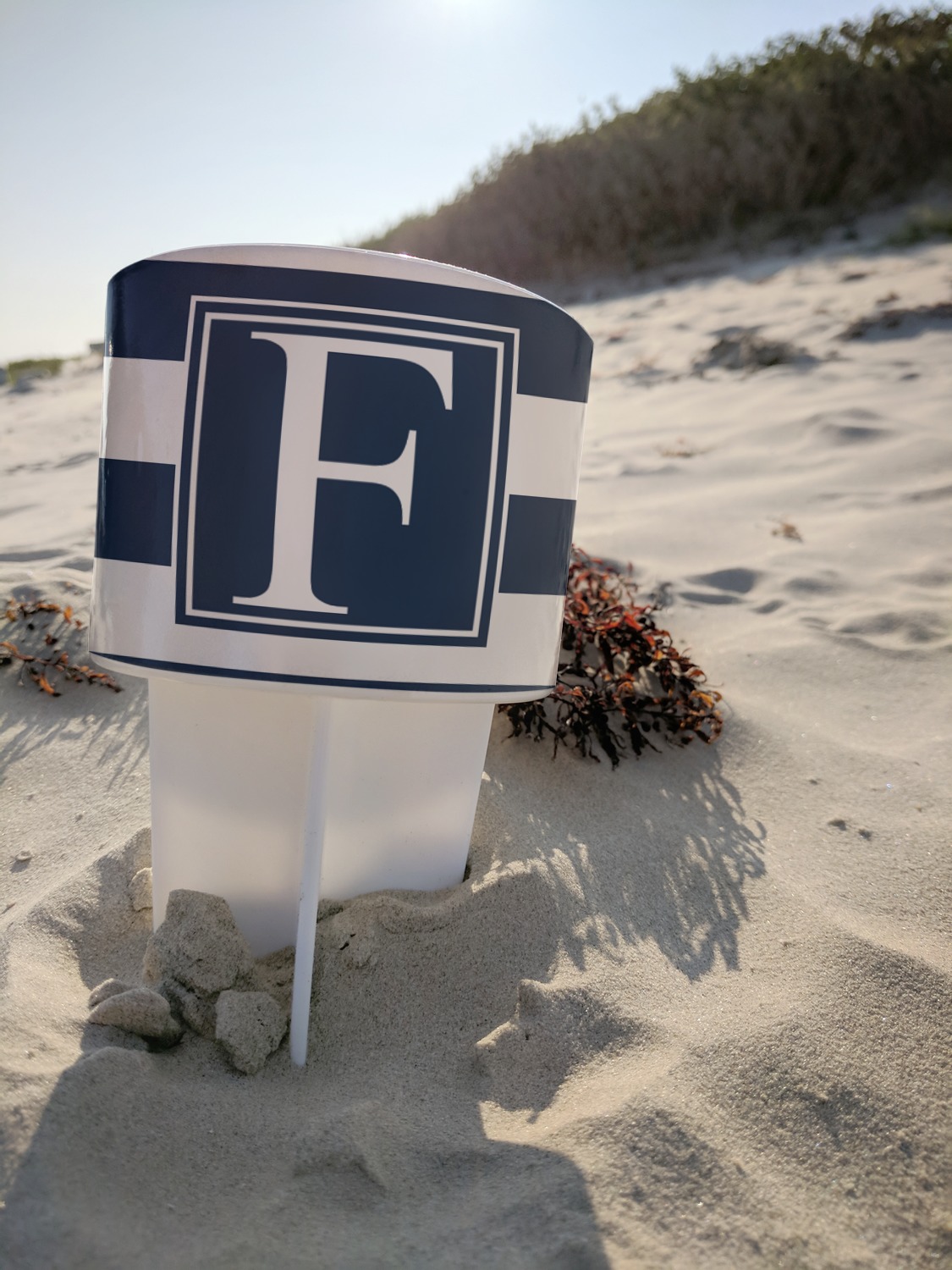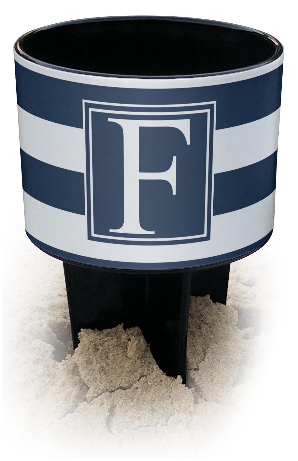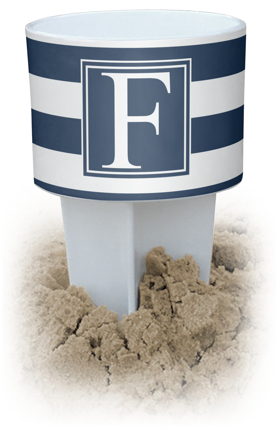 This cup holder has a large stake at its bottom that anchors it to the sand or ground below, while the cup holder rests above the stake. The entire drink holder is made of durable plastic and displays your customization around the cup holder portion. We sell these personalized beach spikers in two different colors: black and white.