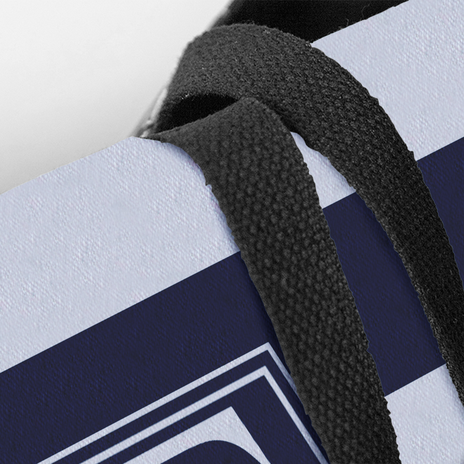 The totes are made from a sturdy canvas material on the outside and are lined with a black poly cotton lining. The beach totes have an approx. 28" black woven handles.
