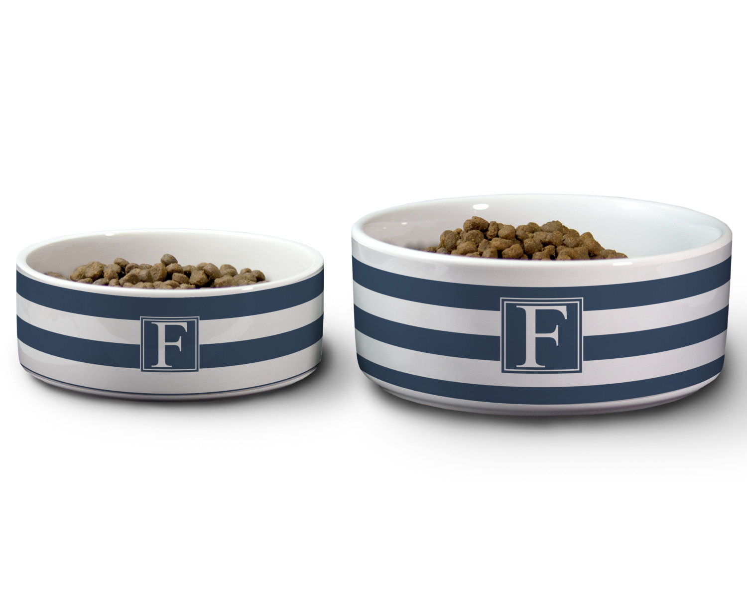 Our customized, ceramic dog bowls allow you to fashion a durable, yet expressive gift for your pet. These bowls are fashionably versatile; they suit both cats and dogs and can hold either food or water. Add your pet's name or favorite color to the design, and spruce up his/her eating area with one or two personalized pet bowls!