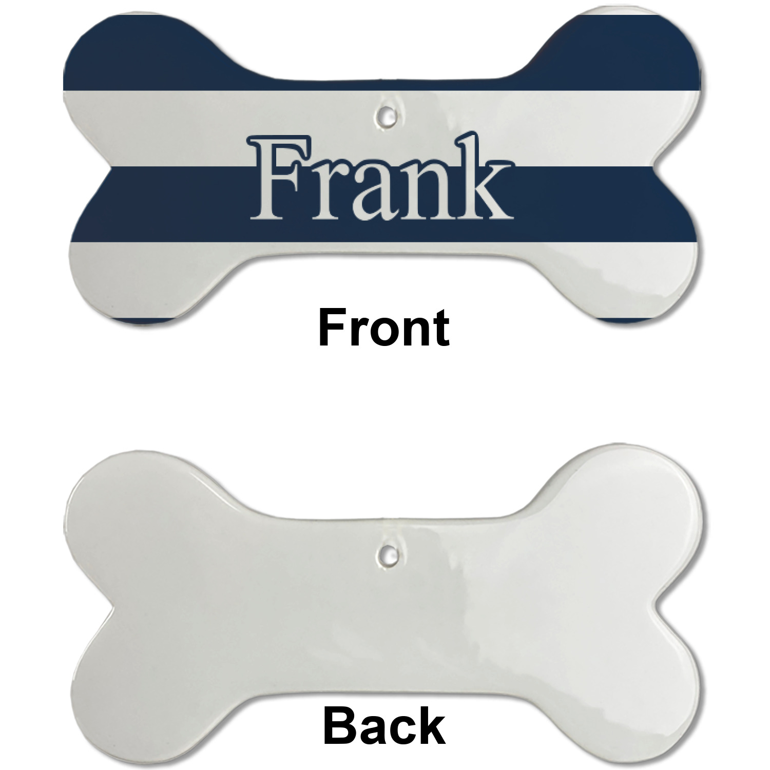 Our dog Christmas ornaments are a ceramic material with a bone-shaped structure hung horizontally. We offer two printing styles to personalize your furry friend's ornament! Choose a one-sided printing, perfect for wall decor, memorial accessory, or doghouse nameplate! Create a double-sided ornament perfect for adorning the Christmas tree. Each dog bone ornament is approximately 4.75" x 2.25" and is printed here in the USA.
