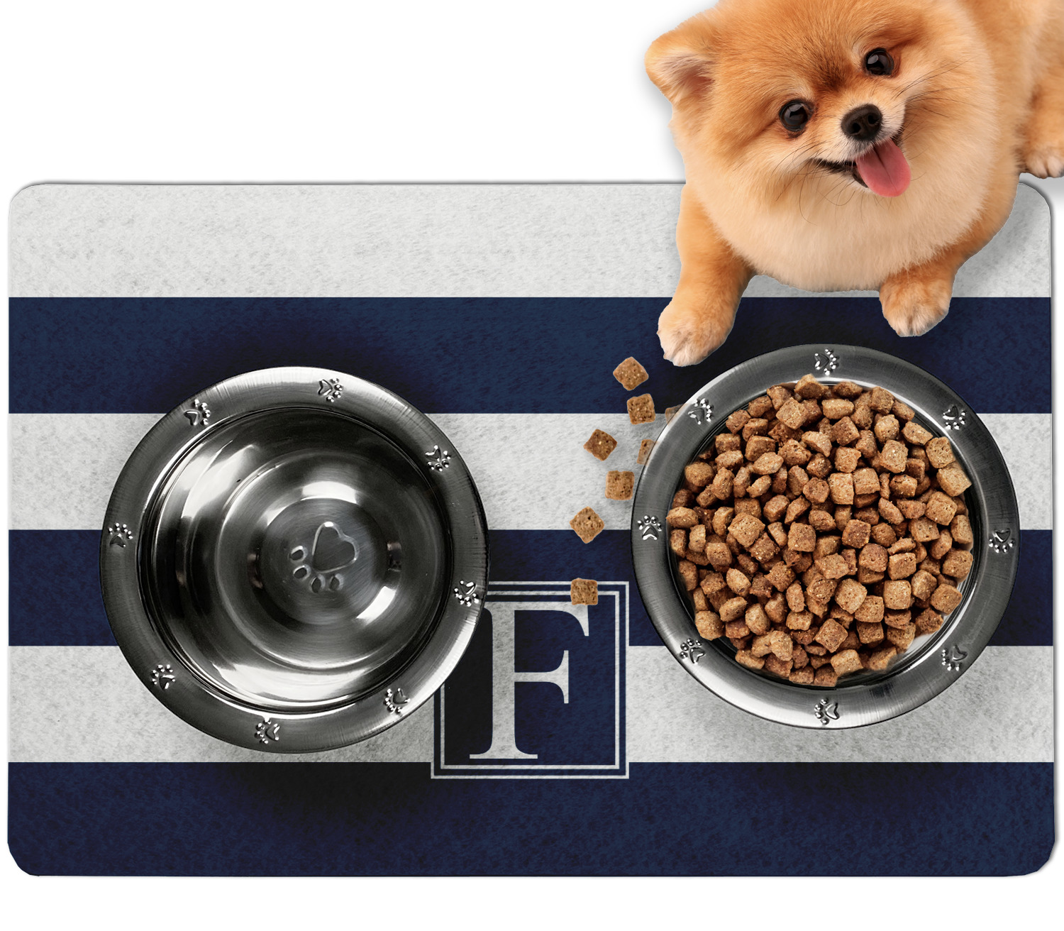 Frustrated with the mess your pets make during mealtime? Personalize a multi-functional dog food mat that prevents spills from reaching your floors, while also incorporating some cute decor to your dog's eating area!