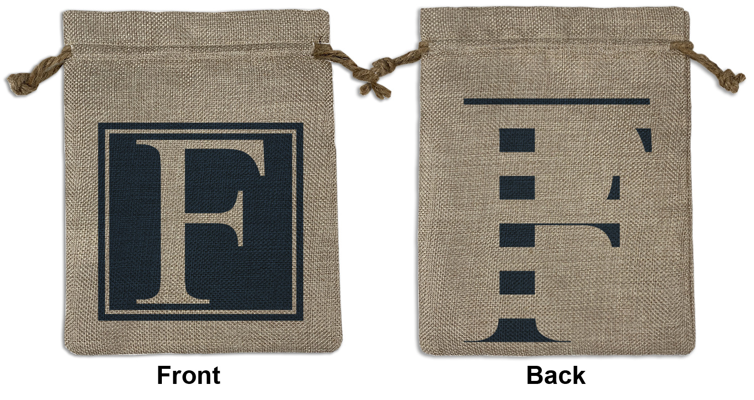 We sell our Burlap Gift Bags in 3 variant sized bags. Made with burlap polyester, each personalized bag can be secured with a twine drawstring pull. Your custom design is available to print on one side or both sides - completely up to you! The sizes of the bags measure approximately 4.5" x 6.5" for the smallest size, 6.5" x 8.0" for the medium size, and 6.5" x 13.5" for the large-sized bag.