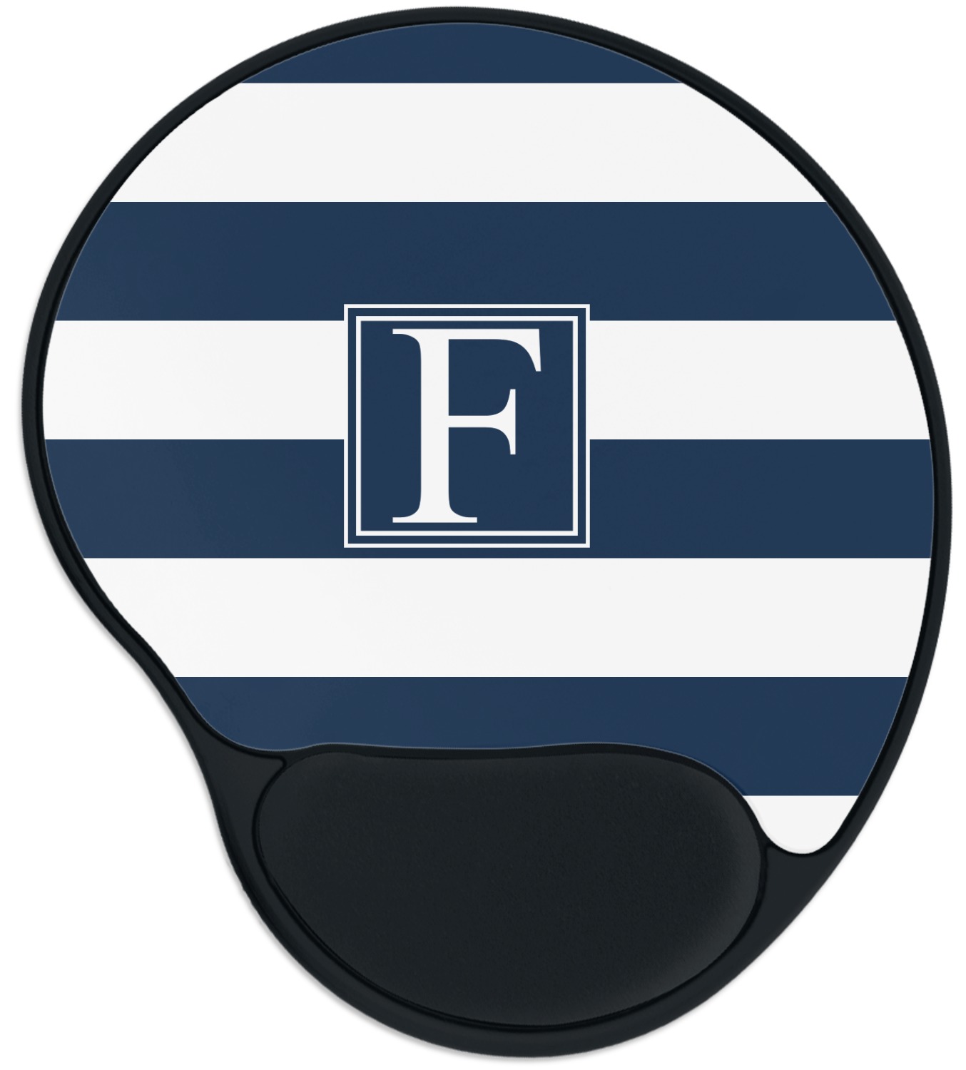 The top of these personalized mouse pads are made from a polyester, while the underside is plastic. The back of these mouse mats include rubber feet to prevent any slippage while in use. A padded wrist support, made from plush memory foam, occupies the bottom section of these computer mouse pads. Your customized design is printed onto the face of this mat, with the remaining sides and support piece colored in black. The mat itself is rounded and measures at 10.25" x 9.13".