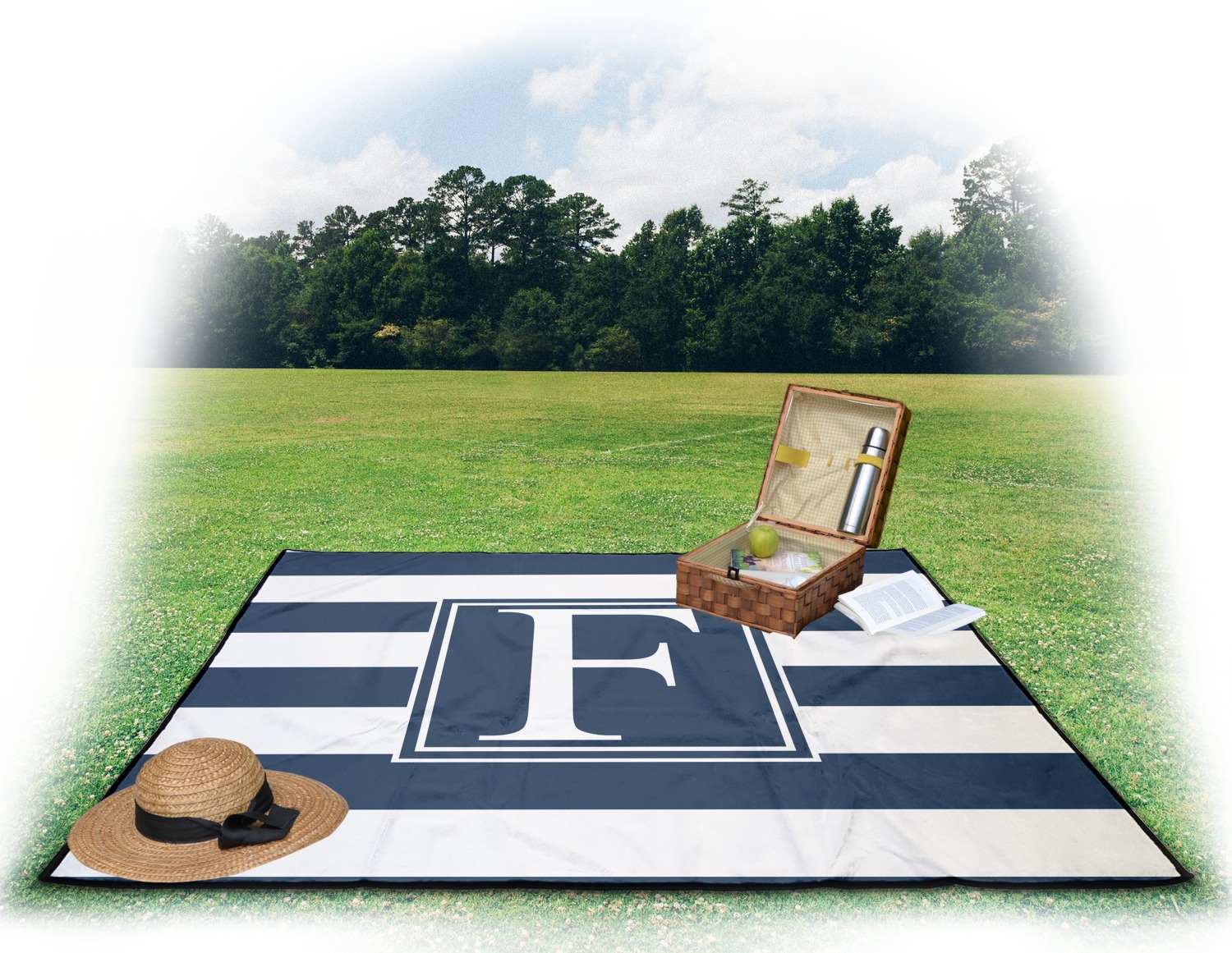 This picnic blanket is perfect for hanging out with your friends at the park or anywhere outside. The top of the blanket is made of a super soft microfiber fleece. The bottom of the blanket is made of a black material similar to a rain jacket and is water repellent as well. This will keep any wet spots on the ground from soaking through your picnic blanket. No one likes a wet blanket. The blanket measures at approximately 50" x 59" and has a nicely finished ribbon edge.