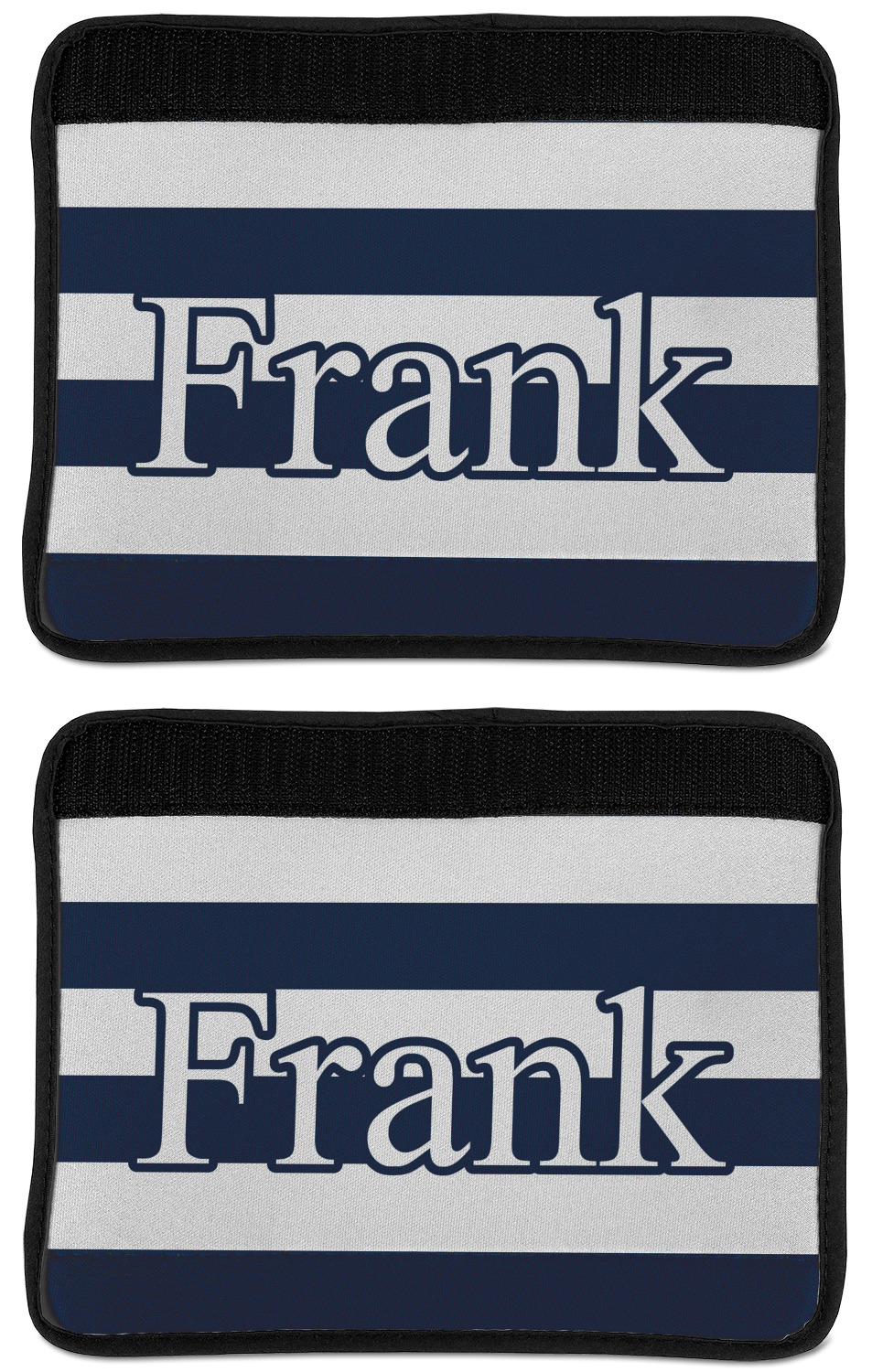 Made from neoprene, our seat belt strap covers wrap around the belt itself and have a Velcro tab for easy attachment and closure. The belt's edges are trimmed with a black polyester for a secure finish. Each cover is 9.5 by 7 inches when open and 9.5 by 2.5 inches when closed. We print your personalized design on the face of the seat belt pad.