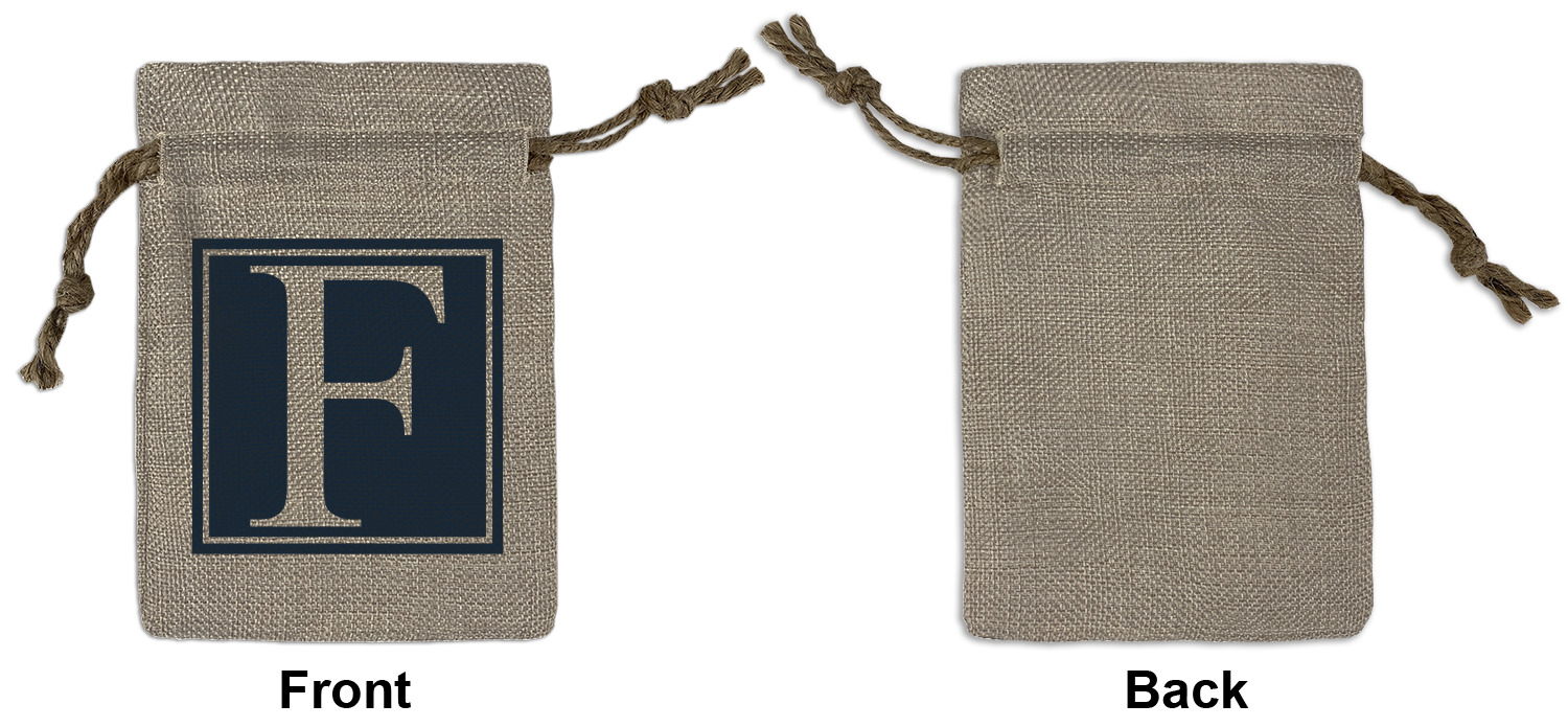 We sell our Burlap Gift Bags in 3 variant sized bags. Made with burlap polyester, each personalized bag can be secured with a twine drawstring pull. Your custom design is available to print on one side or both sides - completely up to you! The sizes of the bags measure approximately 4.5" x 6.5" for the smallest size, 6.5" x 8.0" for the medium size, and 6.5" x 13.5" for the large-sized bag.