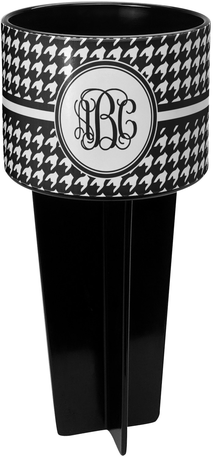 This cup holder has a large stake at its bottom that anchors it to the sand or ground below, while the cup holder rests above the stake. The entire drink holder is made of durable plastic and displays your customization around the cup holder portion. We sell these personalized beach spikers in two different colors: black and white.
