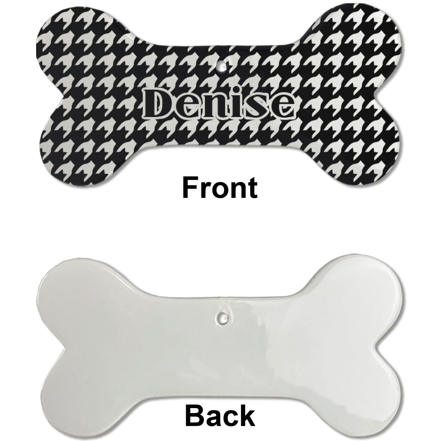 Our dog Christmas ornaments are a ceramic material with a bone-shaped structure hung horizontally. We offer two printing styles to personalize your furry friend's ornament! Choose a one-sided printing, perfect for wall decor, memorial accessory, or doghouse nameplate! Create a double-sided ornament perfect for adorning the Christmas tree. Each dog bone ornament is approximately 4.75" x 2.25" and is printed here in the USA.