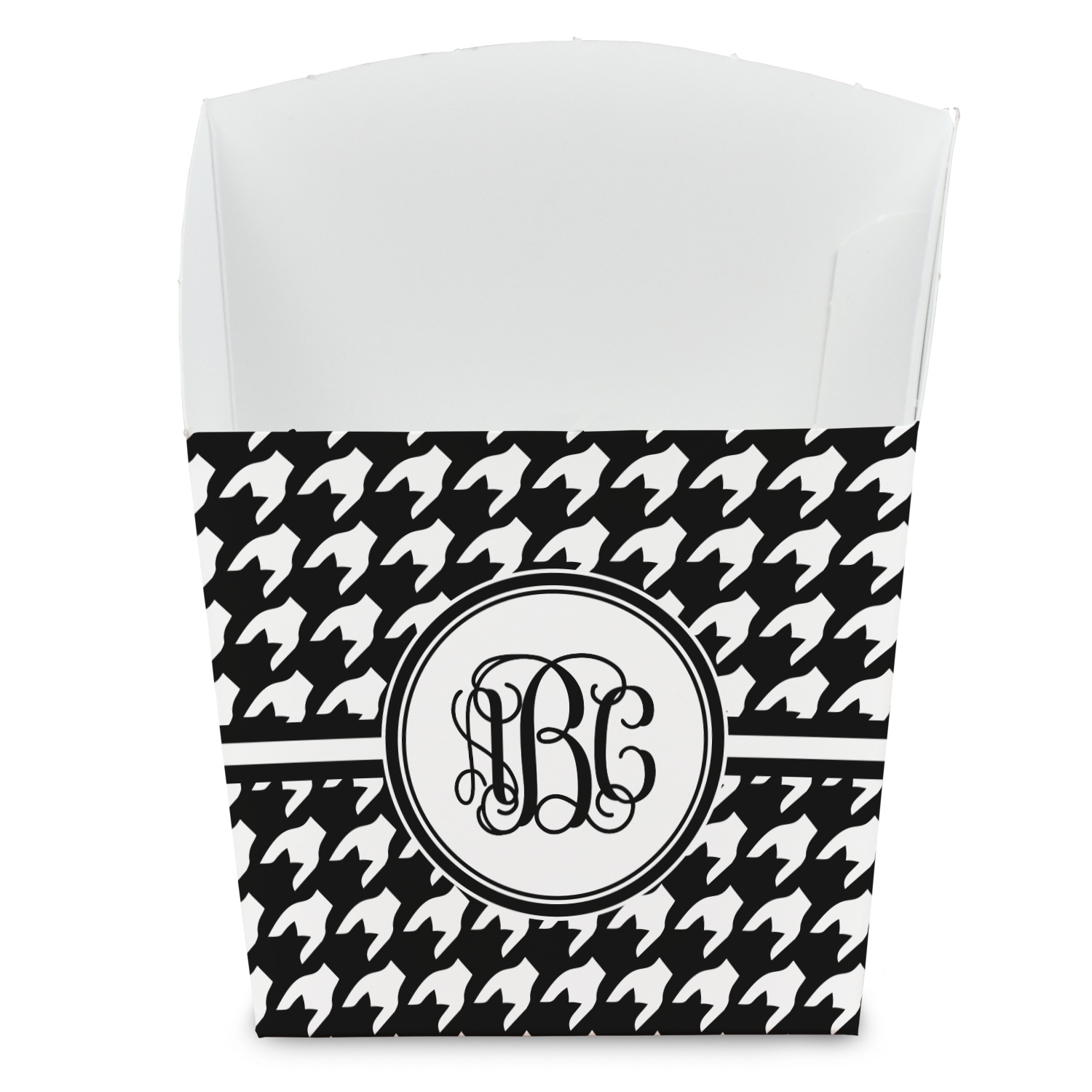 Since it is an open box, it works very well as a party snack cup (instead of plates) for different types of dry snacks and treats such as popcorn, cheezies, pretzels, chips, twizzlers, etc. This box can easily be carried with a drink all in one hand!