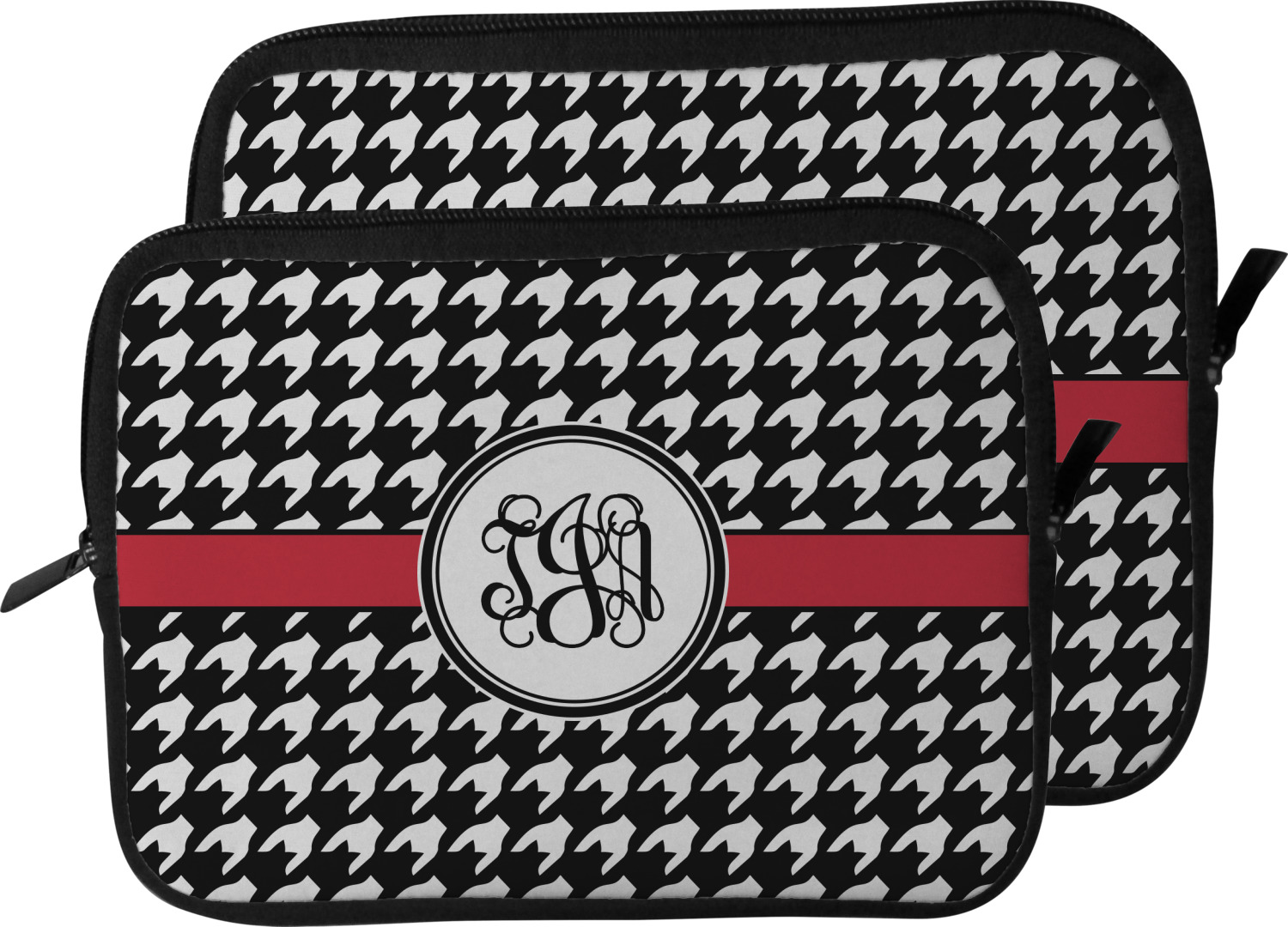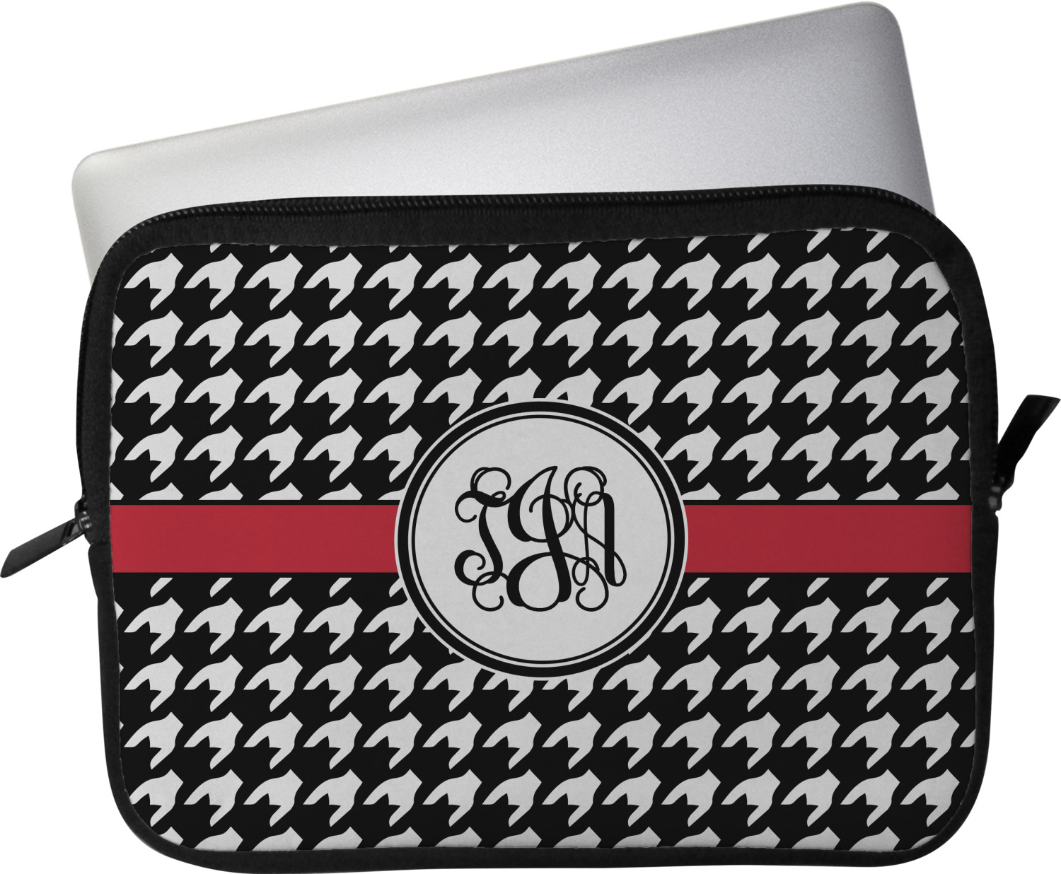 These laptop covers are built from a water-resistant, cushioned neoprene. We display your personalized design on the front of this computer sleeve, while the other sides are simply the black color of the neoprene fabric. A zipper lines the top half of this case, for direct access to your device. For added protection, the interior of this neoprene laptop sleeve is lined with a padded, minky-like material.