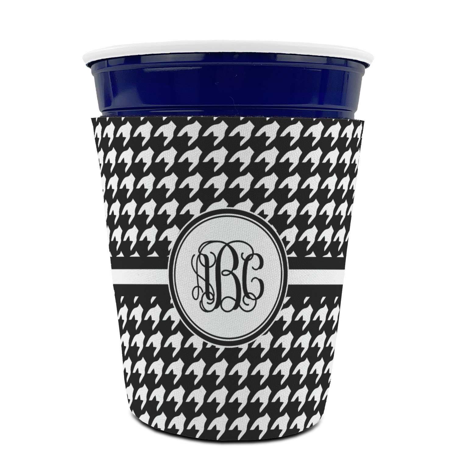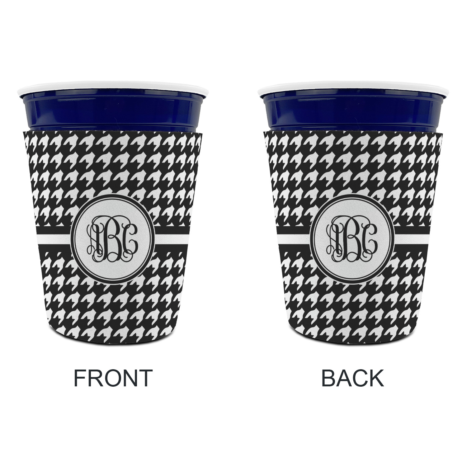 Made from neoprene with a polyester outer fabric and sewn seams, these premium quality party cup sleeves are very durable and will hold up to heavy use. They are available in 2 styles - with a bottom or just a sleeve to go around the outside of the tapered cup. The sleeve covers are about 4" tall and cover about 90% of the classic 16 oz. Solo cup.