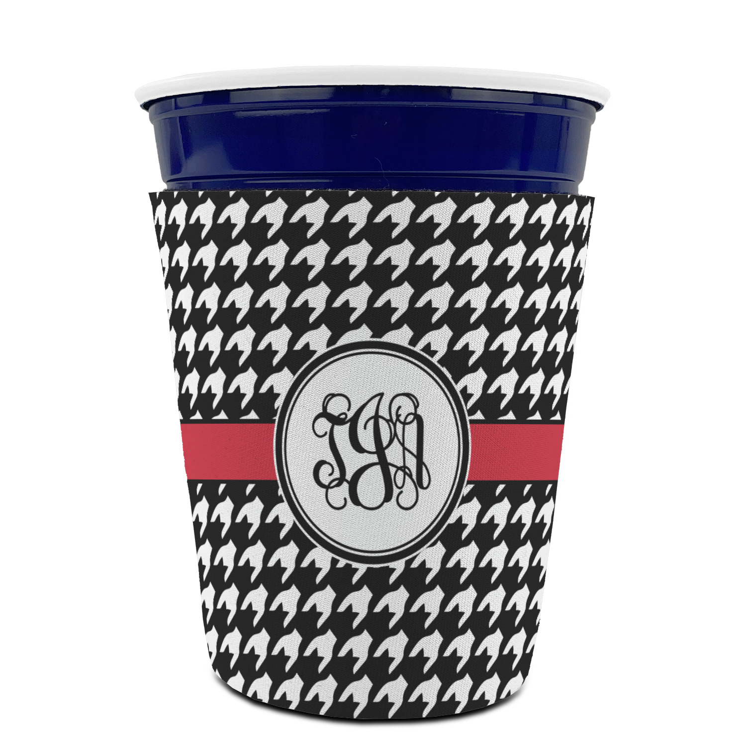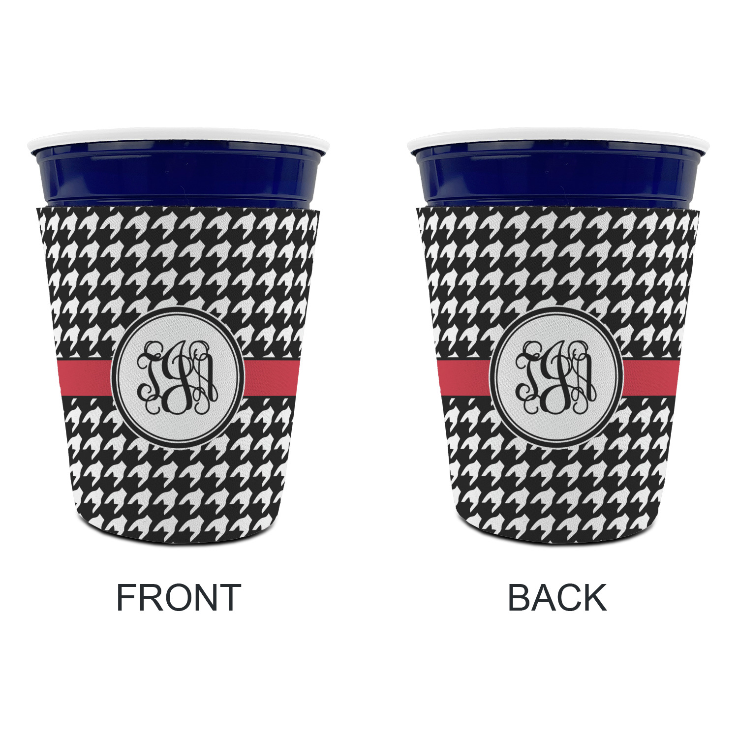 Made from neoprene with a polyester outer fabric and sewn seams, these premium quality party cup sleeves are very durable and will hold up to heavy use. They are available in 2 styles - with a bottom or just a sleeve to go around the outside of the tapered cup. The sleeve covers are about 4" tall and cover about 90% of the classic 16 oz. Solo cup.