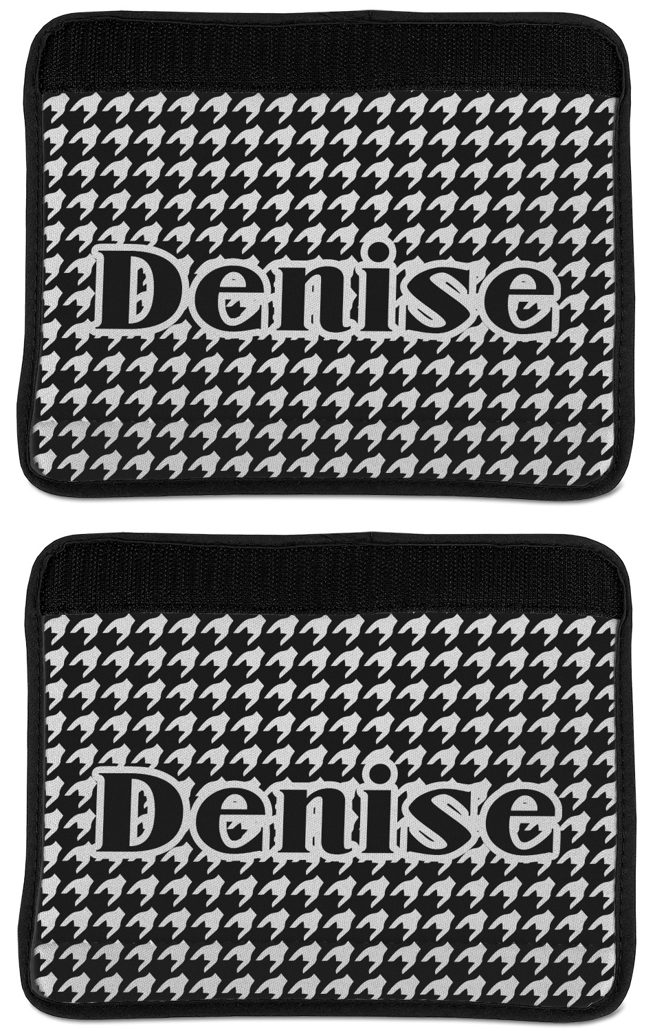Made from neoprene, our seat belt strap covers wrap around the belt itself and have a Velcro tab for easy attachment and closure. The belt's edges are trimmed with a black polyester for a secure finish. Each cover is 9.5 by 7 inches when open and 9.5 by 2.5 inches when closed. We print your personalized design on the face of the seat belt pad.