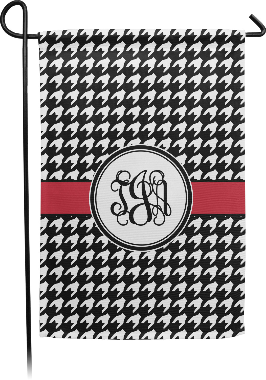 These custom garden flags are made of a durable, double-ply, polyester weave, allowing them to withstand the elements year round. The small flags measure at approximately 12 by 18 inches. The large flags measure out to 28 by 37 inches. You can order these decorative flags with your customization printed on the front only, or the front and back.