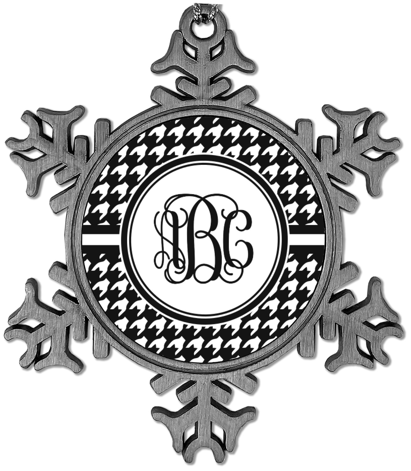 The snowflake shape ornament is an everlasting pewter material with a circular center to display your photo or design, giving it a unique vintage ornament look. Our personalized Christmas ornament comes in a small gift box for keepsake sure to preserve your picture ornament until the next holiday season. The snowflake shape is approximately 3 x 3 with a small silver accent string perfect for hanging. We print your photo or design in the center of the ornament with a size that is roughly 1.75 in diameter.