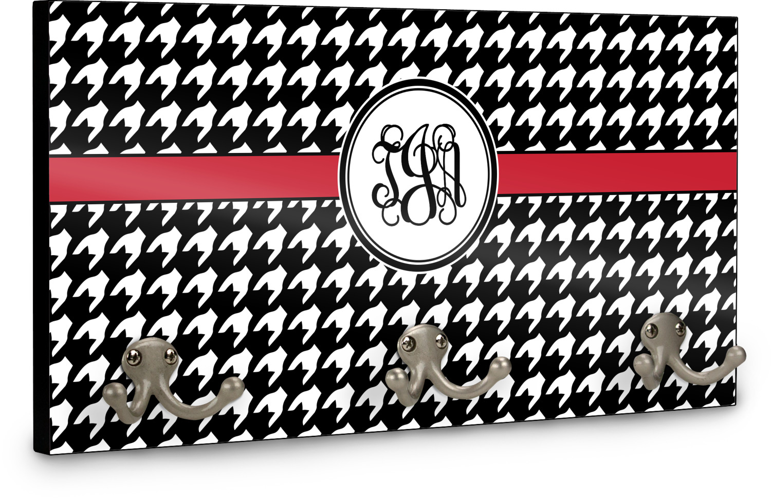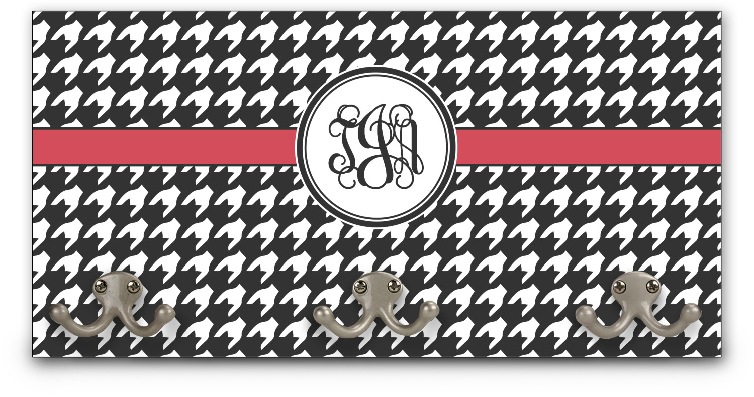 This coat rack is the perfect way to add some personality to your wall or entryway. The board is made of a strong maple that is approximately 16" x 8". The three 2-prong hooks are a sturdy metal that have three screws attaching them to the board. Your design is printed right onto the front of the board while the back and sides are a simple black.