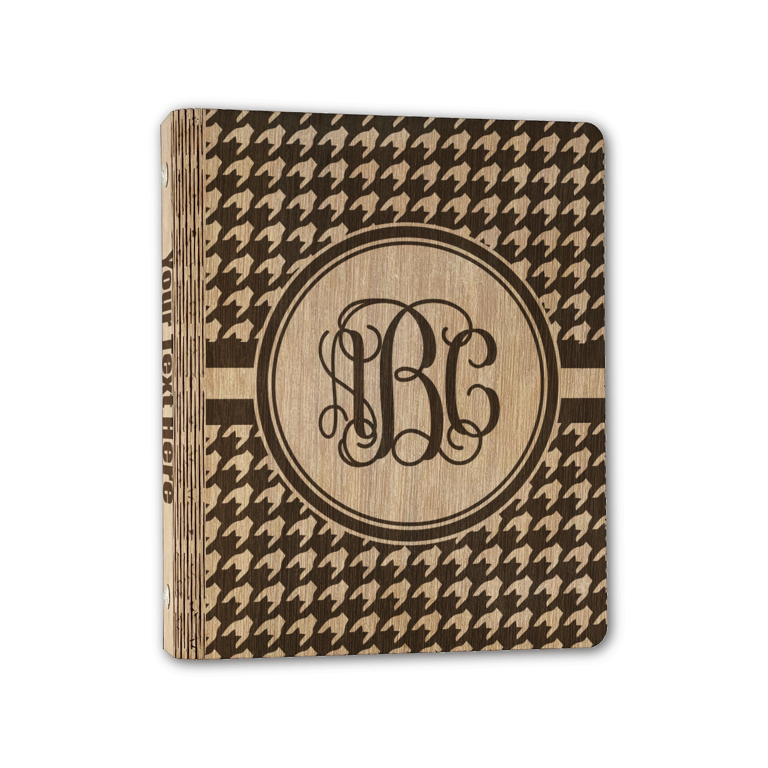 Made from premium hardwood, these are laser engraved then polished with wax to give a nice sheen and smooth feel to the product. The inside of the binders are finished with a faux leather material which is bonded to the inside of the wood to strengthen the wood and give the inside the same refined finish. The rustic brown and gold leather material adds a nice classic touch to the binders.