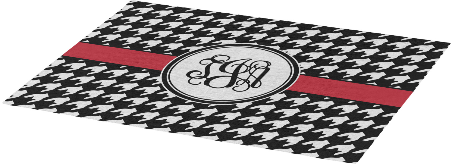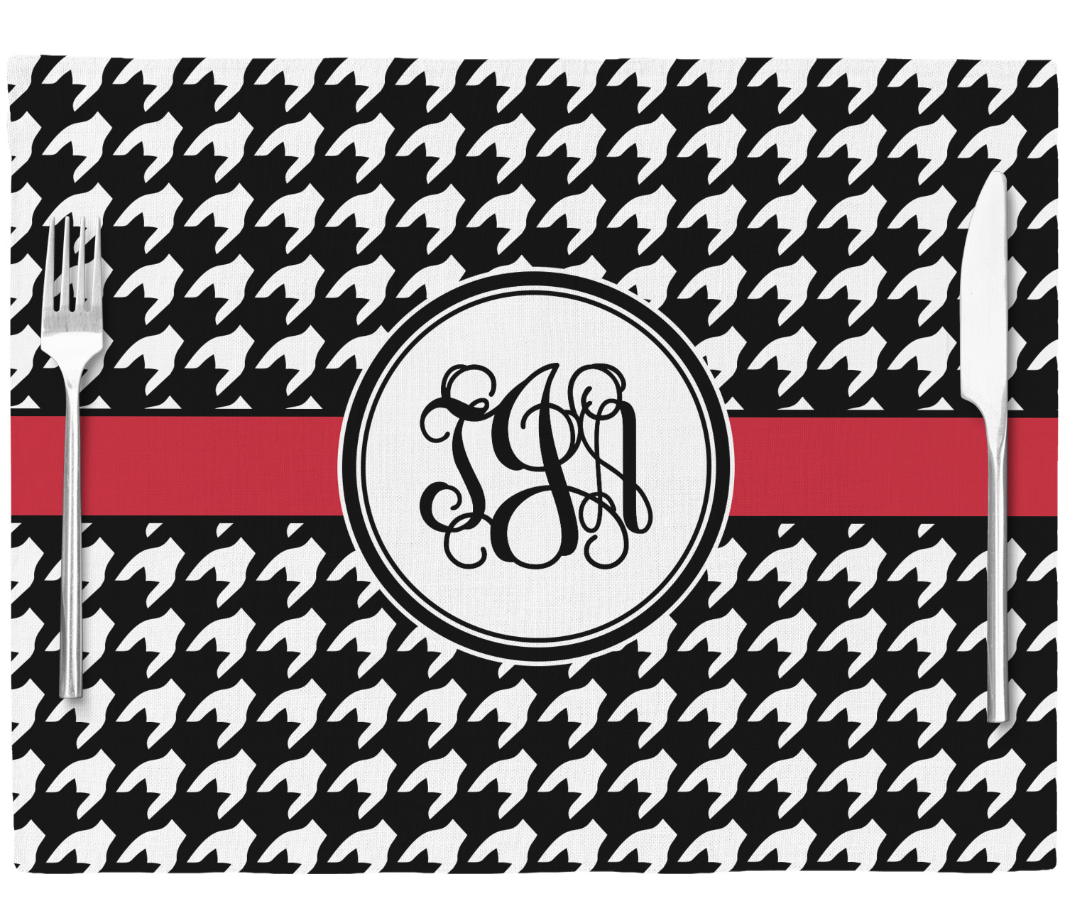 Each of our table mats are a poly twill material with woven burlap detailing. This creates a soft, quality placemat for us to fully print your personalized design across. The woven twill also adds a wrinkle-free surface to set your table! Each customizable placemat is a rectangle shape measuring at approximately 13 x 18 and printed here in the USA.