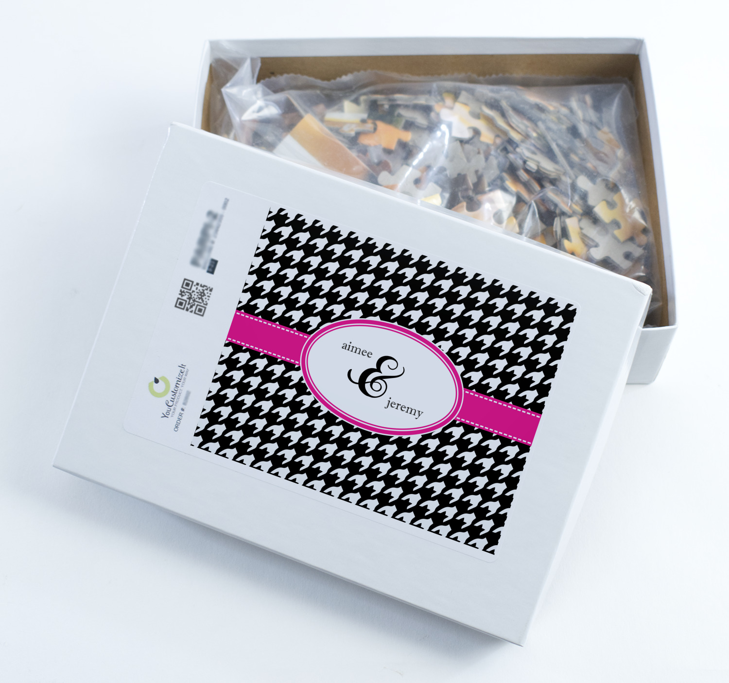 Depending on the look you are trying to achieve, you can add; a thematic pattern or background, with a photo in a frame and text or personalization to your puzzle. Basically if you can imagine it, you can design it!