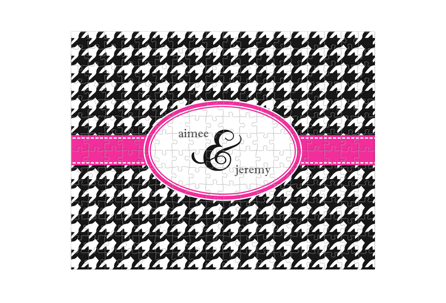 This classic black and white houndstooth pattern jumps to life by adding a modern touch of hot pink.