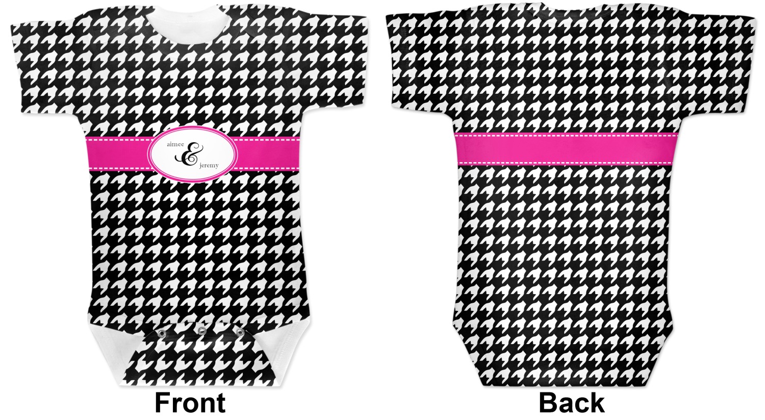 These cute baby bodysuits are made of stretchy, soft-to-the-touch polyester, making them very comfortable for your baby. These baby bodysuits also have snaps on the bottom to give easy access during changing times. Your personalization covers the entirety of this custom baby bodysuit, but the interior is white in color. As these are unisex baby bodysuits, they will work perfectly as baby girl bodysuits and baby boy bodysuits!