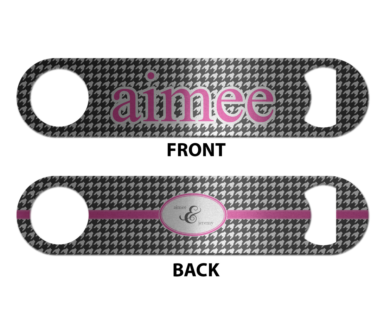 Stop struggling with the caps or your bottled beverages by purchasing one of our personalized bottle openers! These wrench-like custom bar blades are built to last. Customize one for your home's bar, or as a practical gift for a loved one!