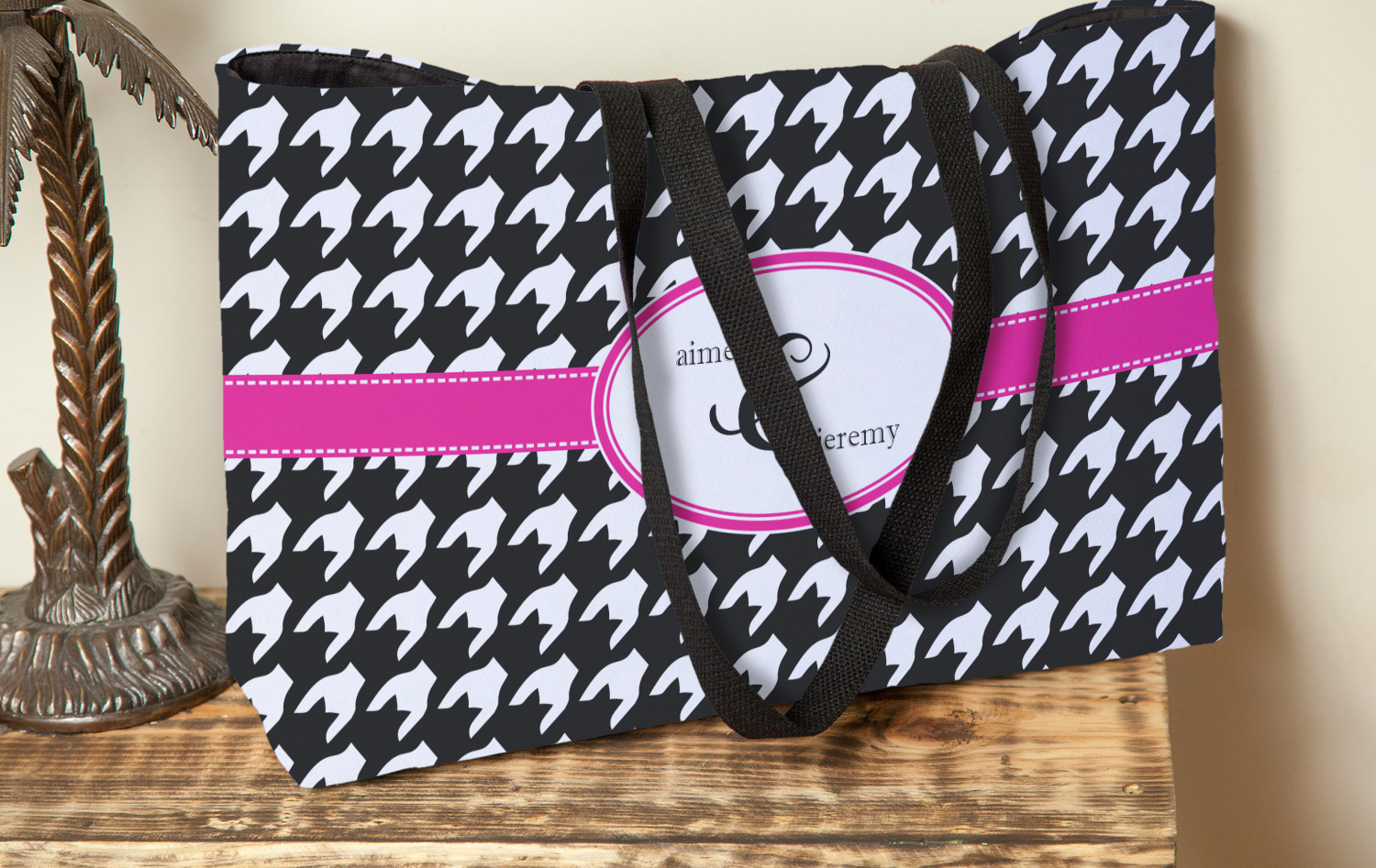 This classic black and white houndstooth pattern jumps to life by adding a modern touch of hot pink.