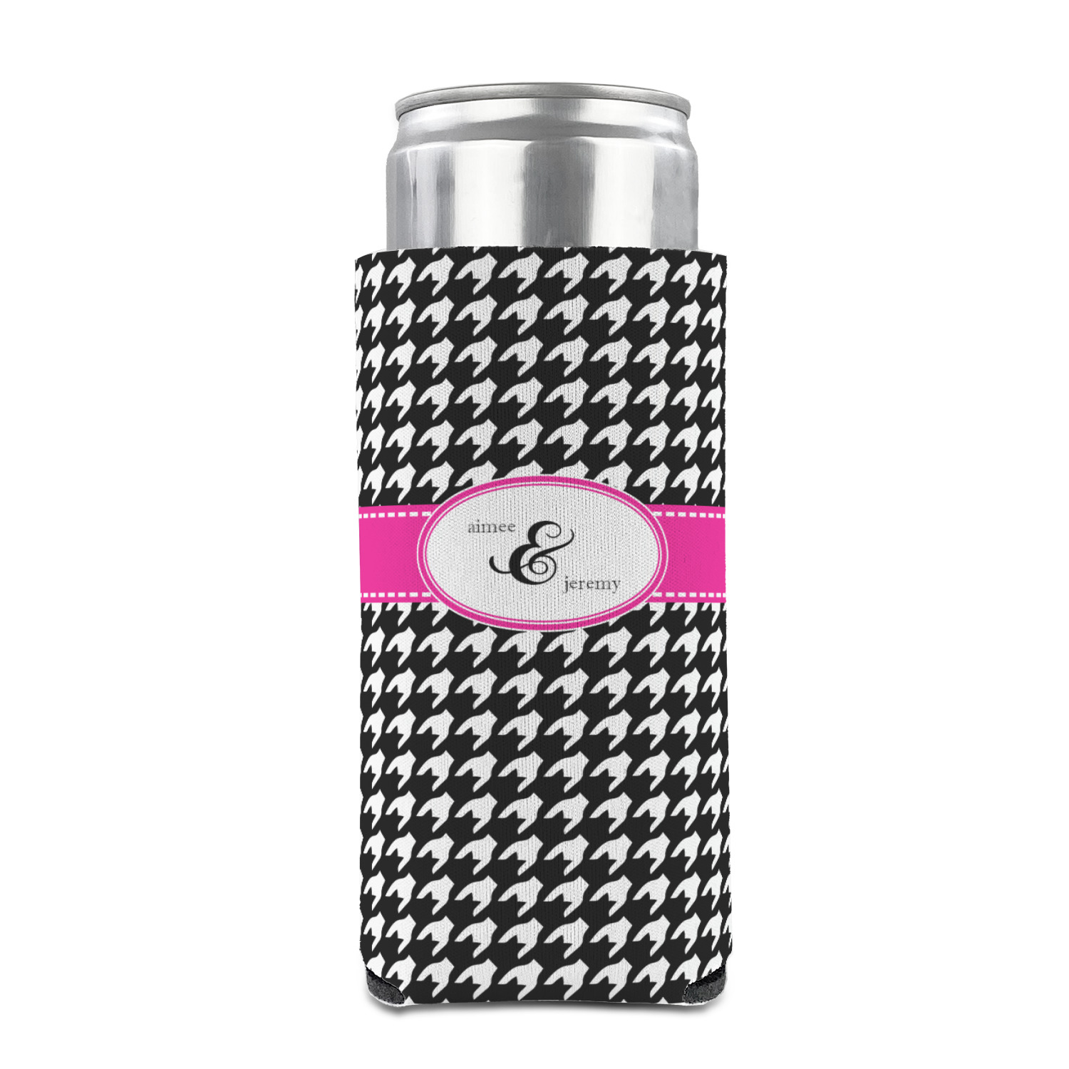 This classic black and white houndstooth pattern jumps to life by adding a modern touch of hot pink.