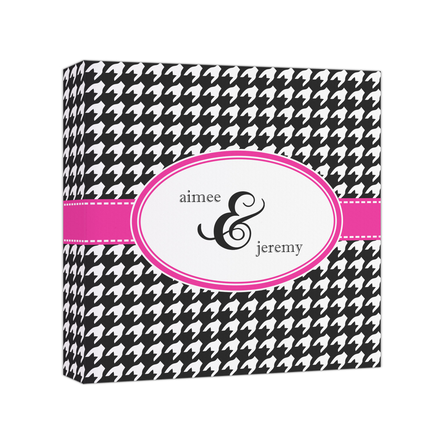 This classic black and white houndstooth pattern jumps to life by adding a modern touch of hot pink.